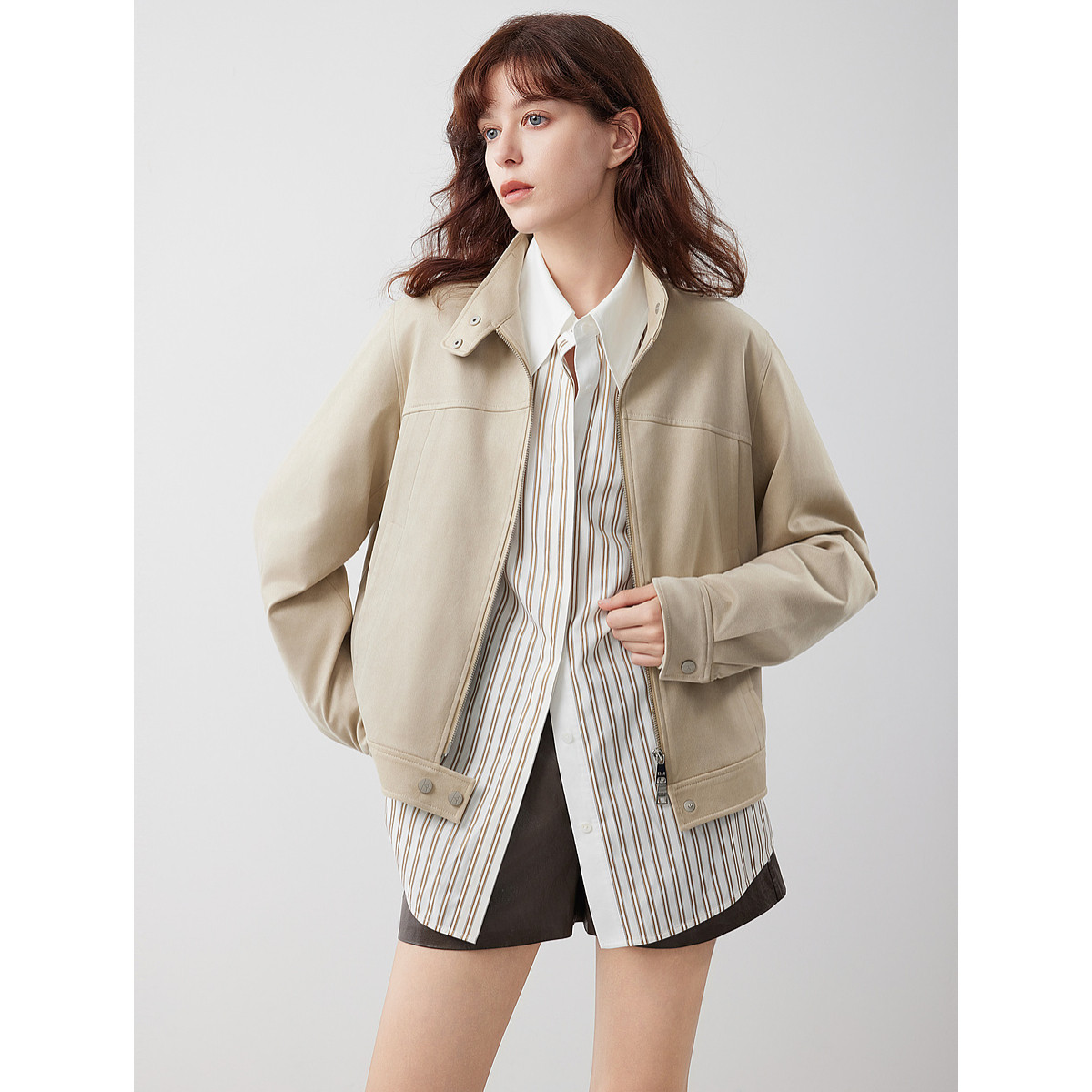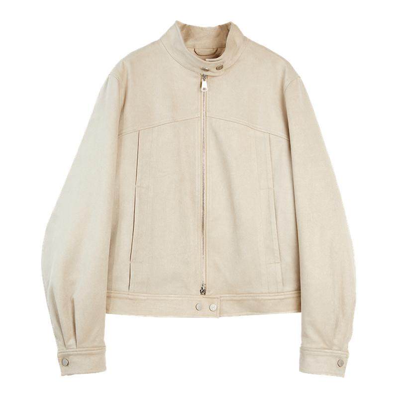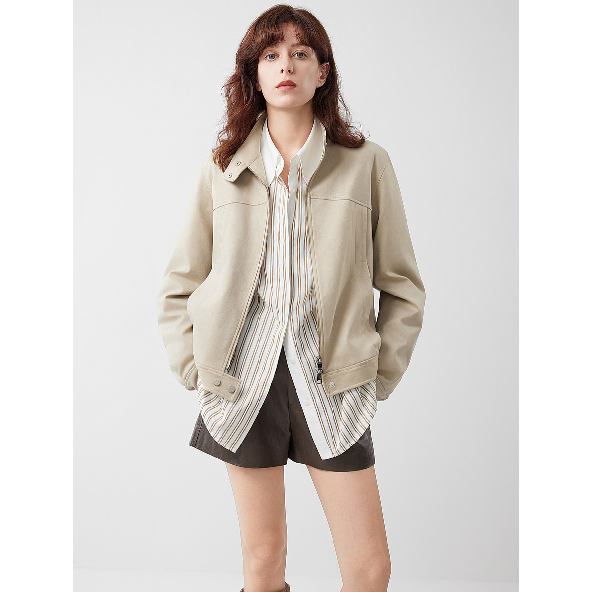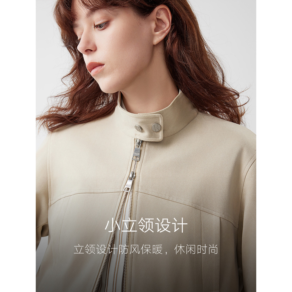 ELLE90白鸭绒立领短款羽绒服女2025冬新款麂皮绒机车通勤夹克外套