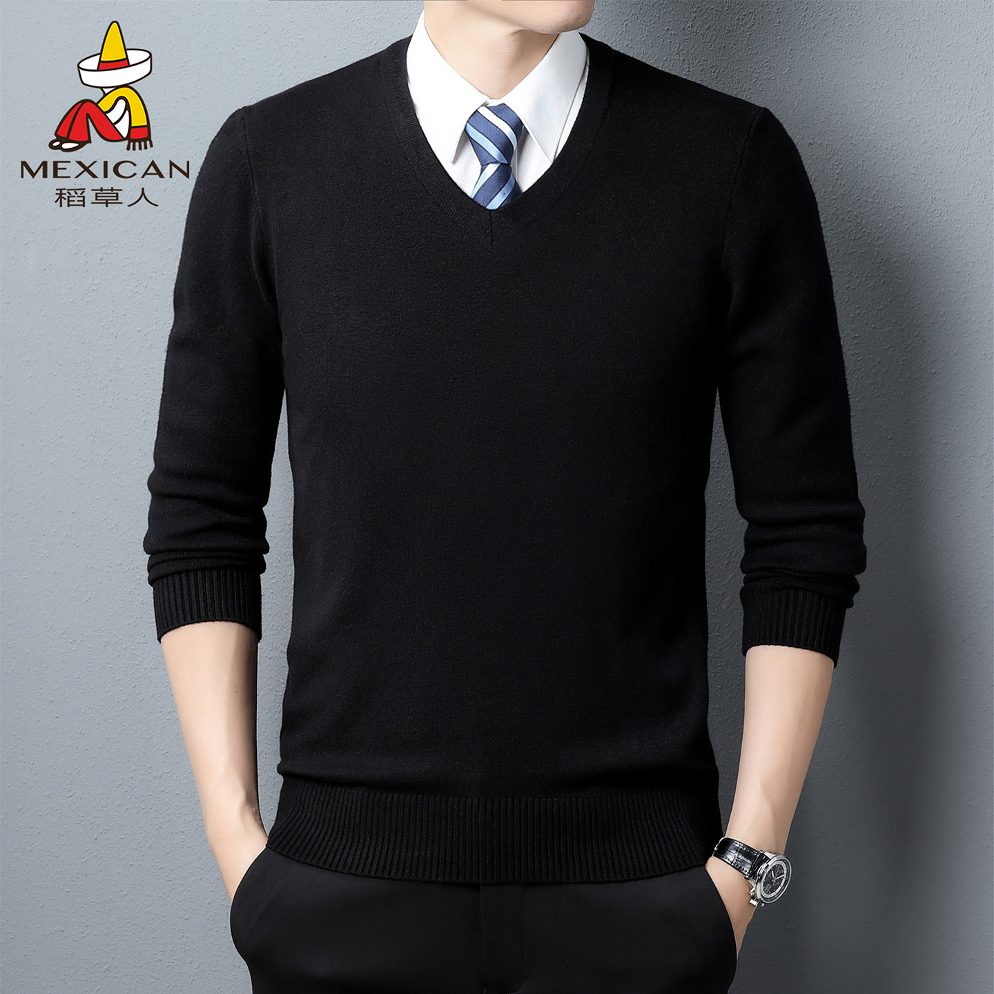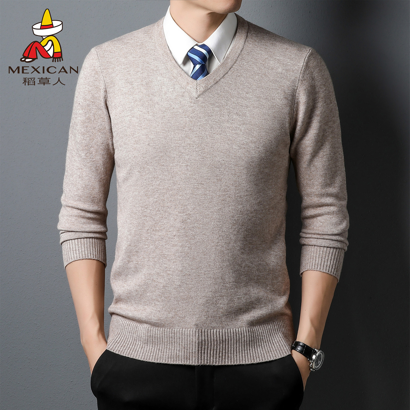 稻草人2025春秋季针织衫V领薄款毛衣男士中青年羊毛衫爸爸装上衣J