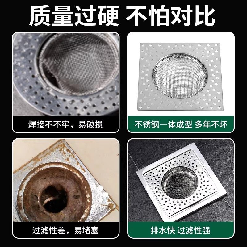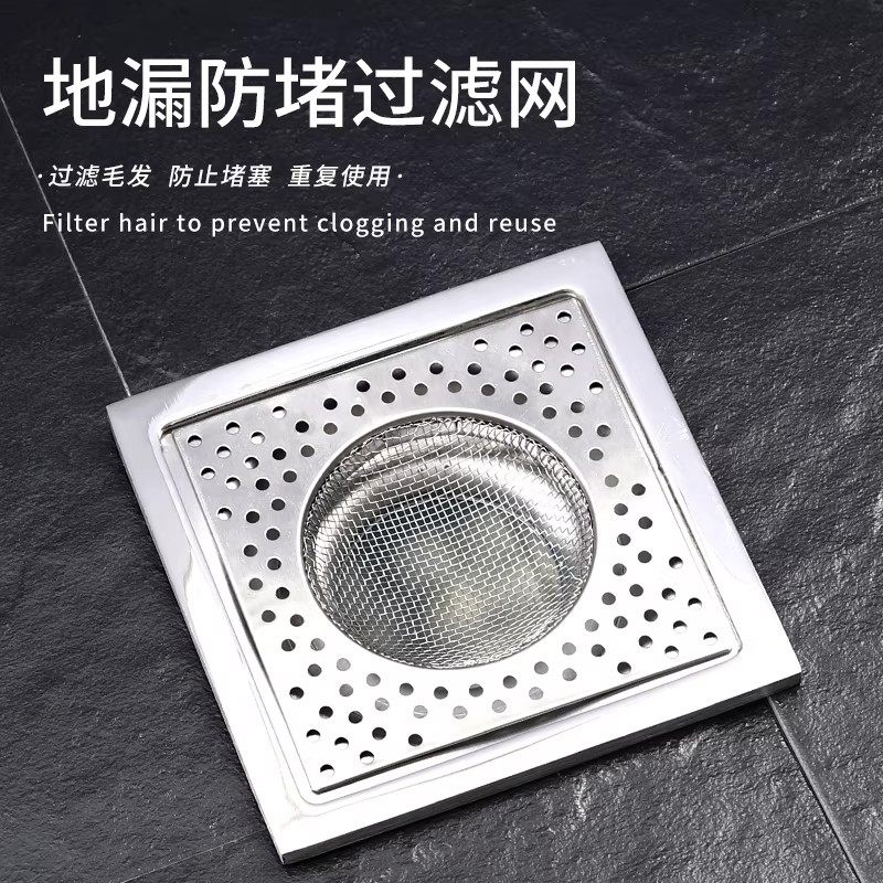 不锈钢地漏过滤网方形厕所地漏毛发过滤网防堵塞头发卫生间地漏盖