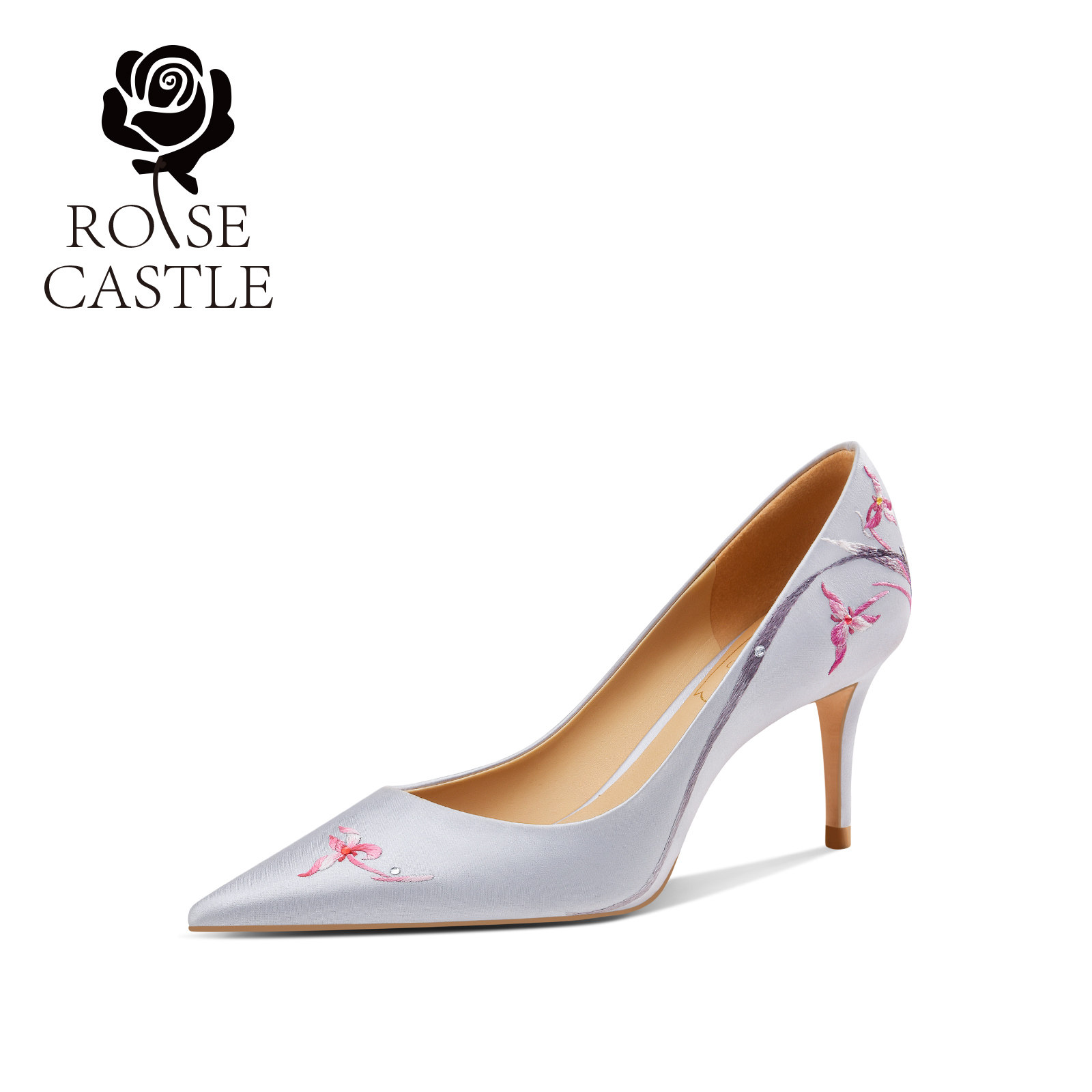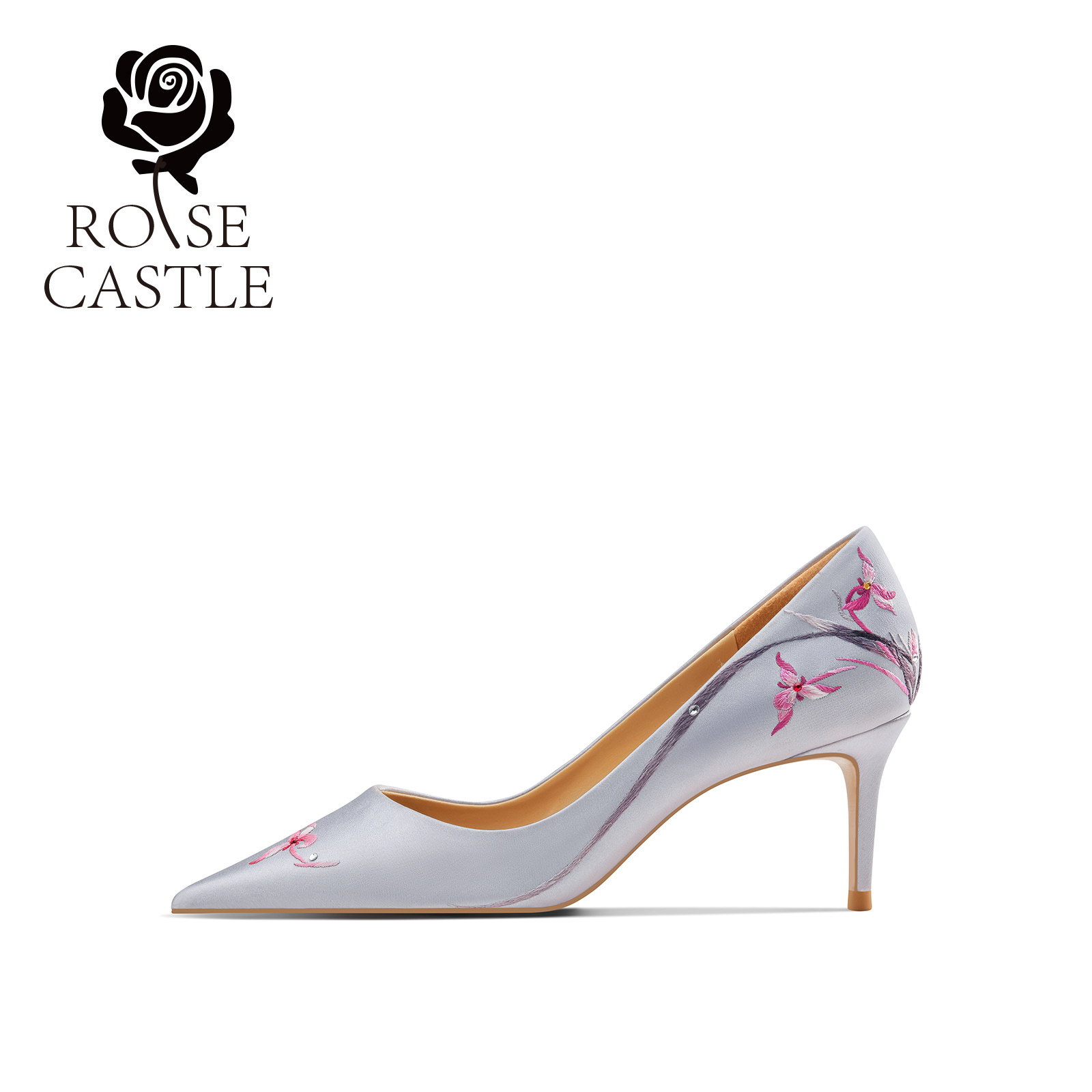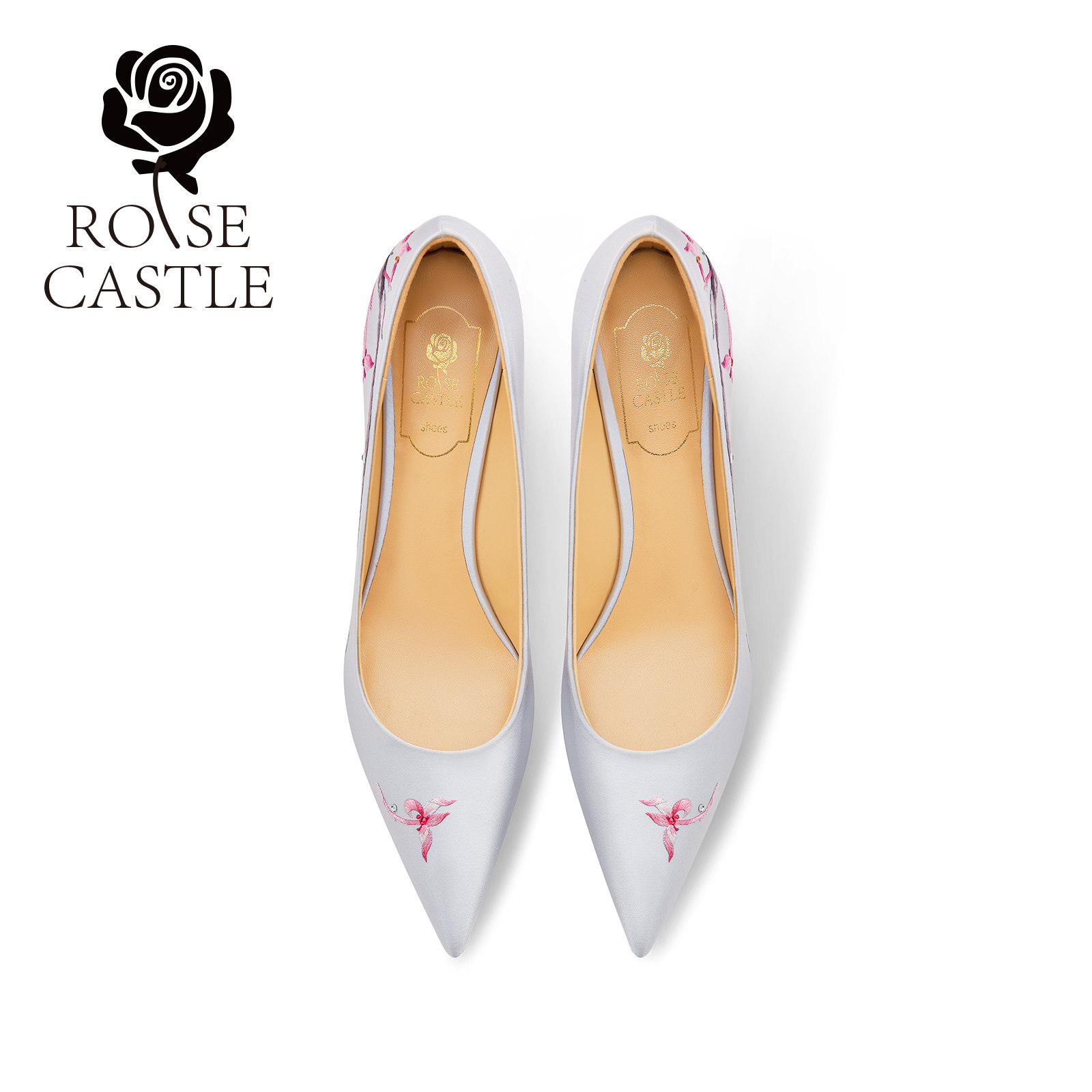 【空谷幽兰】rose castle婚宴鞋手工刺绣新娘婚鞋灰色旗袍高跟鞋
