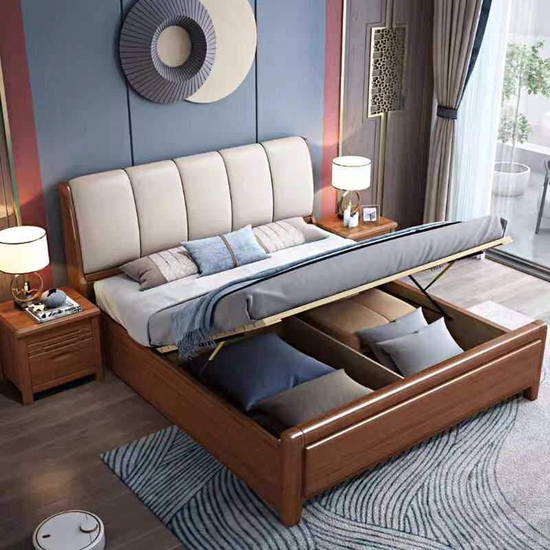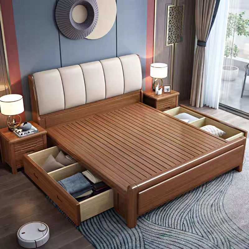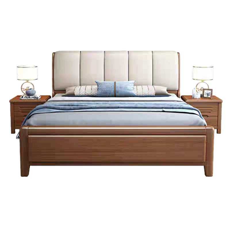 现代简约实木床胡桃色小户型实木软靠大床1.8m带储物双人主卧大床