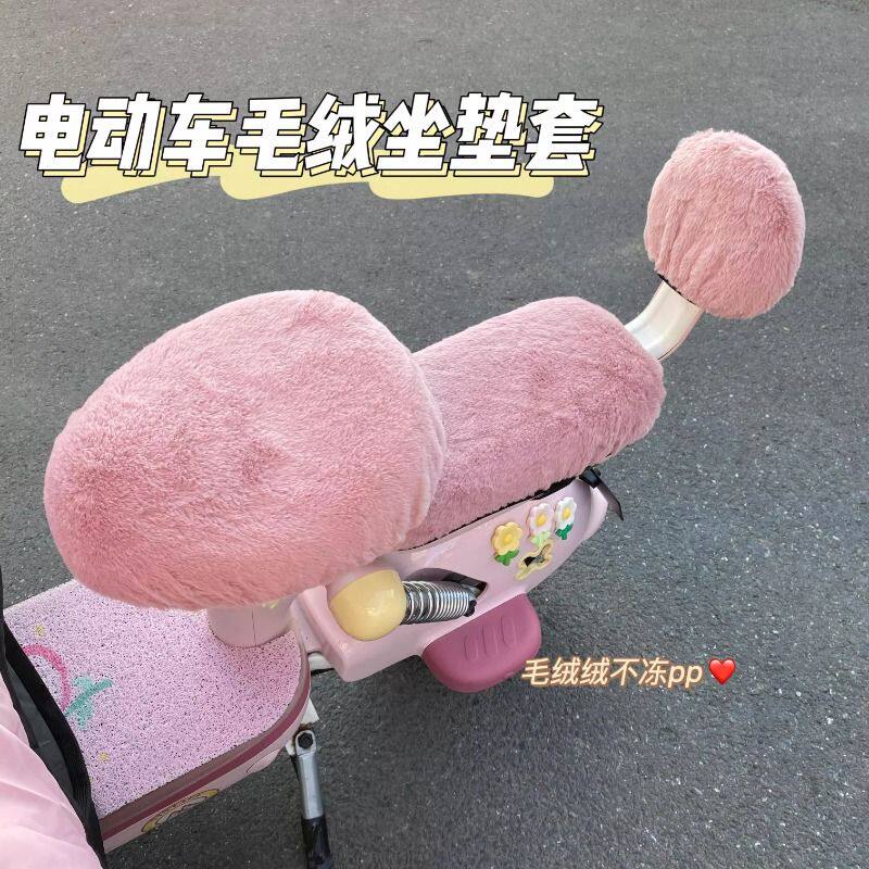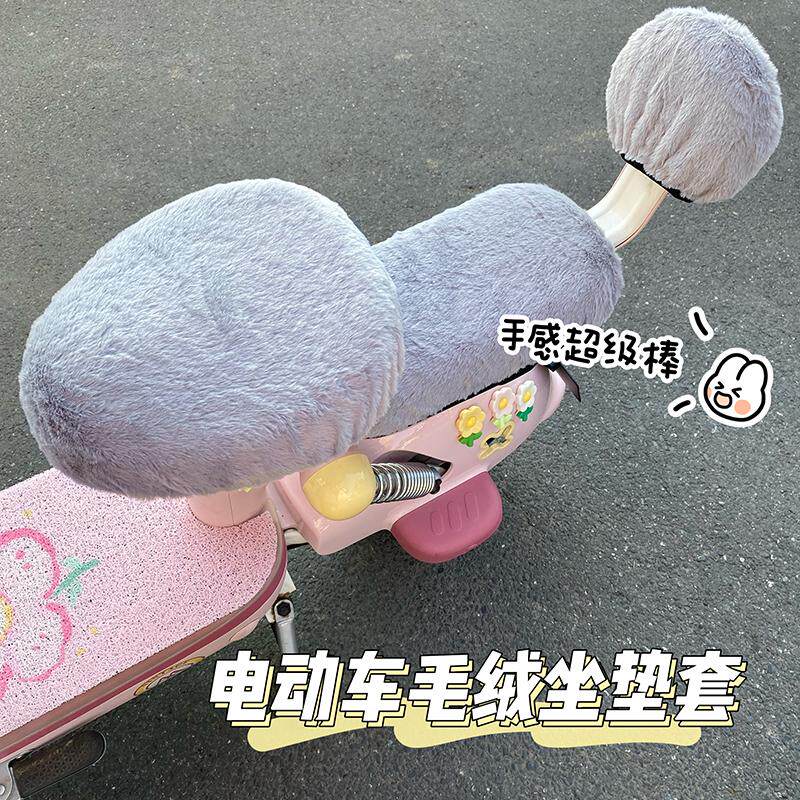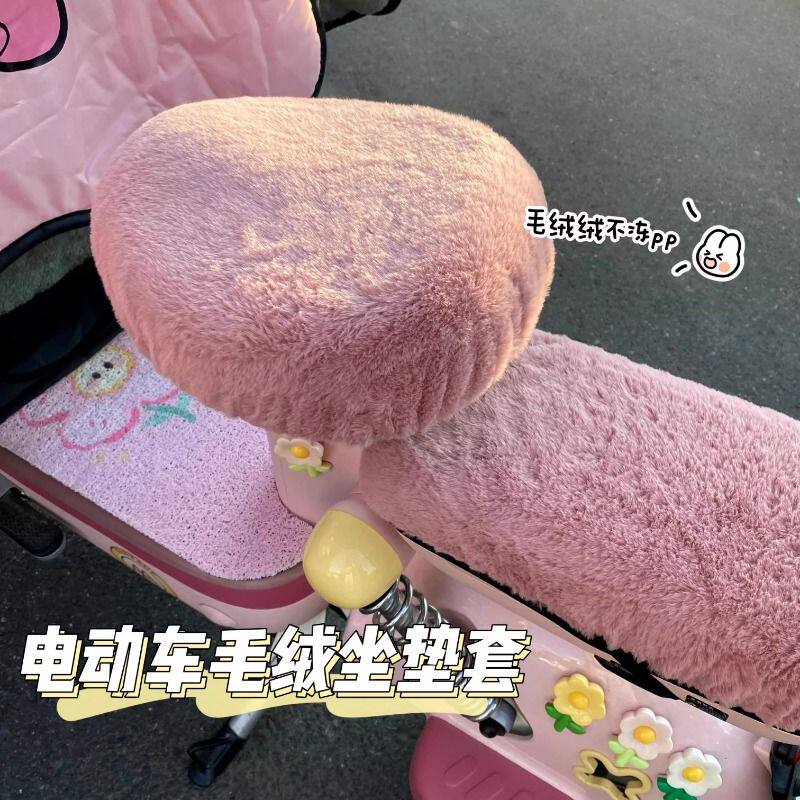 吉畅鹏电动车坐垫套秋冬季加厚绒保暖电瓶车座套卡通可爱电摩通用