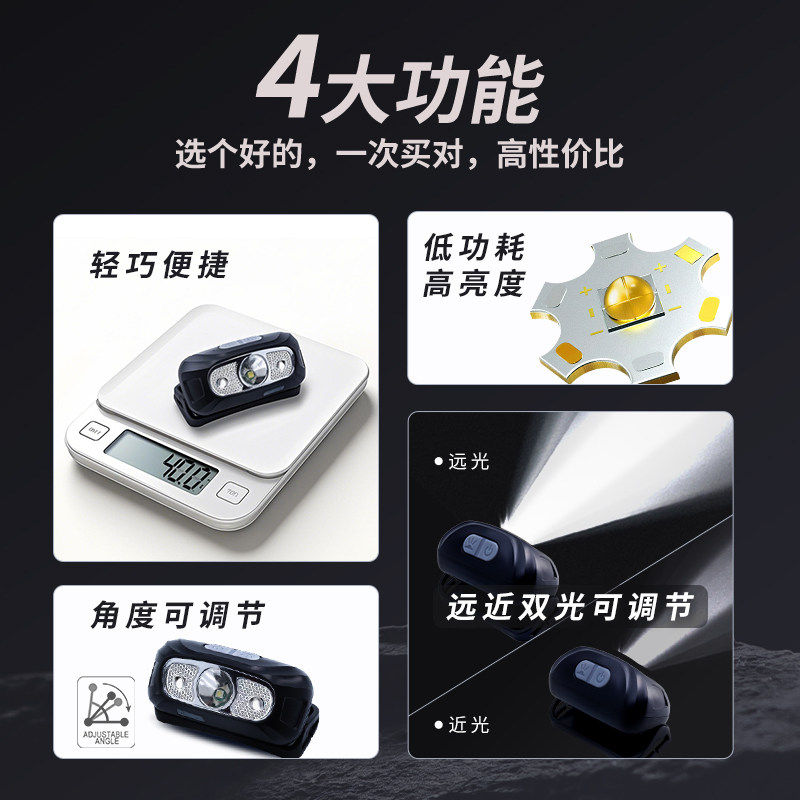 头灯强光充电超亮头戴式照明感应超长续航户外夜钓鱼专用led新款