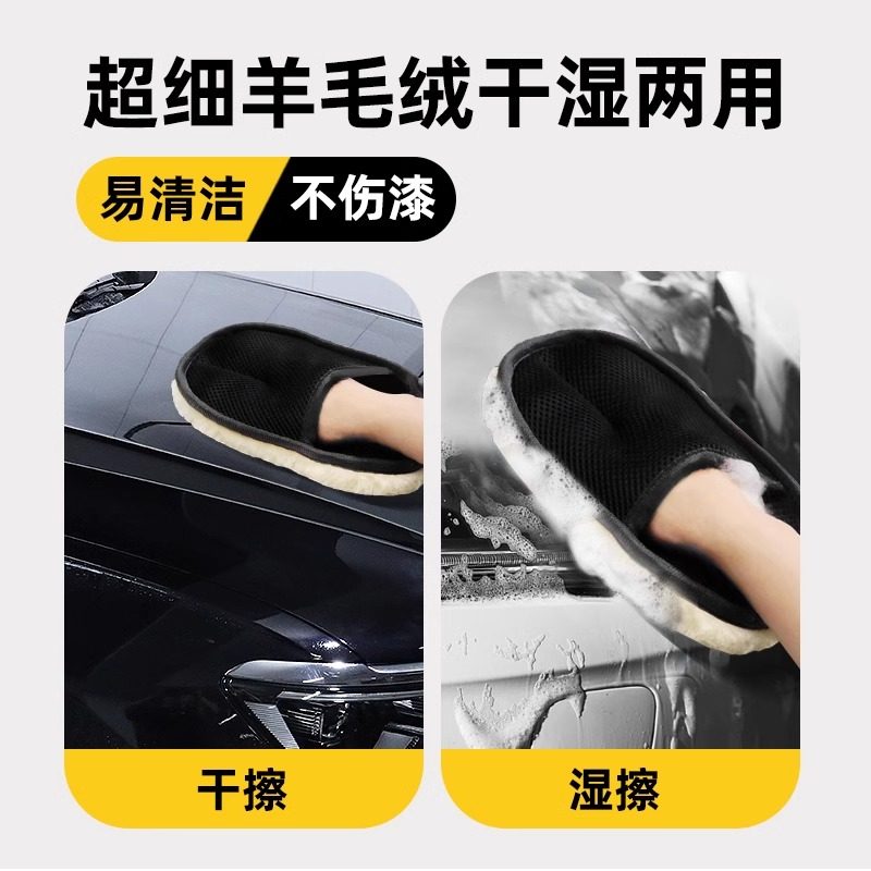 汽车洗车手套专用不伤车加厚毛绒抹布熊掌漆面擦车打蜡专用海绵擦