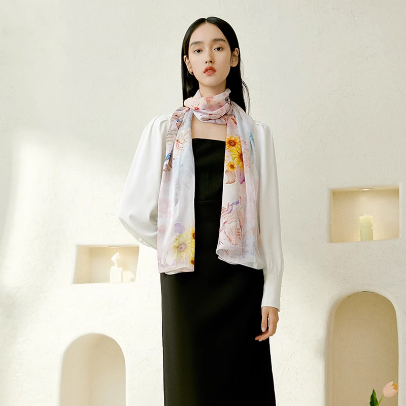 万事利桑蚕丝真丝丝巾女春夏披肩纱巾杭州送礼妈妈长巾--花漾年华