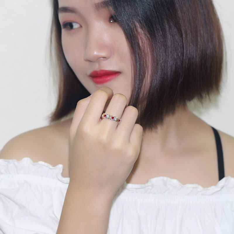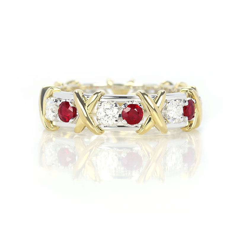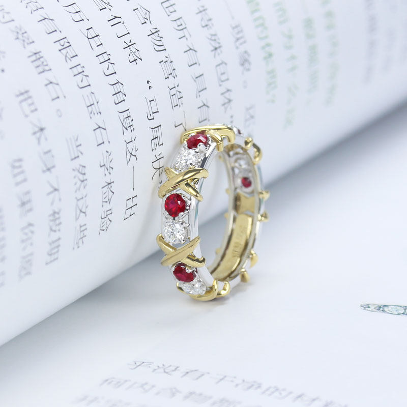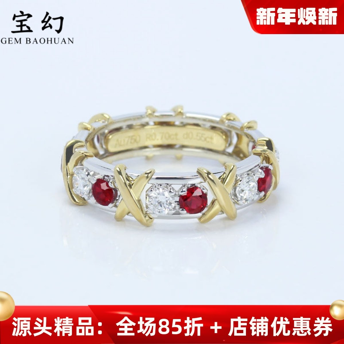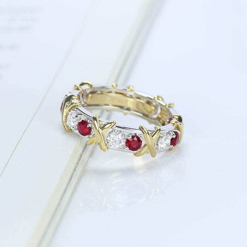 18K白金黄金分色天然鸽血红宝石钻石戒指 交叉X钻戒颜色艳火彩棒