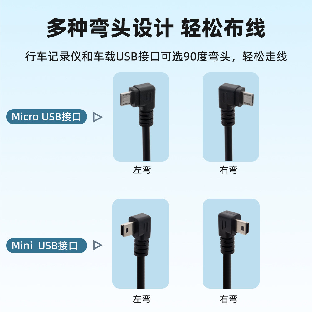 行车记录仪电源线改usb接口充电线typec安卓micro手机数据线连接线双弯头转接车载供电短线适用小米盯盯拍360