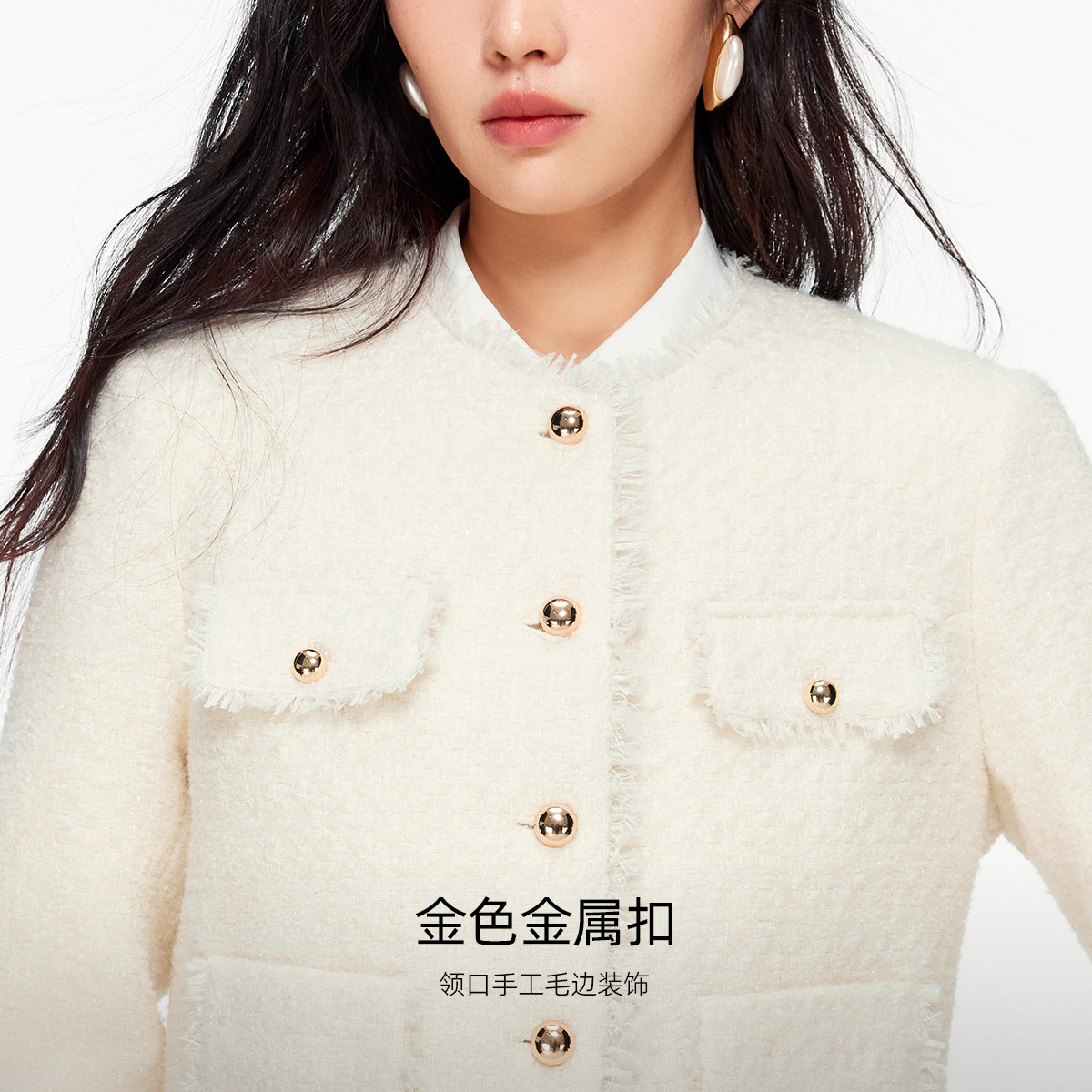 小香风外套,法式优雅;口袋细节,便利十足