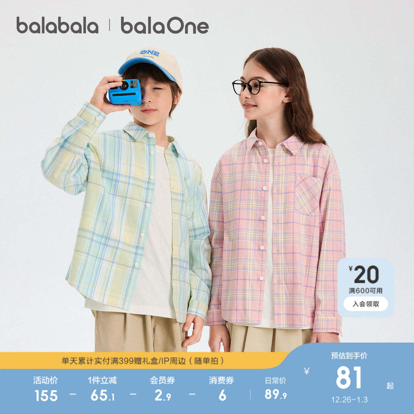 巴拉巴拉童装儿童长袖衬衫宝宝女童男童2026新款春装宽松格纹百搭