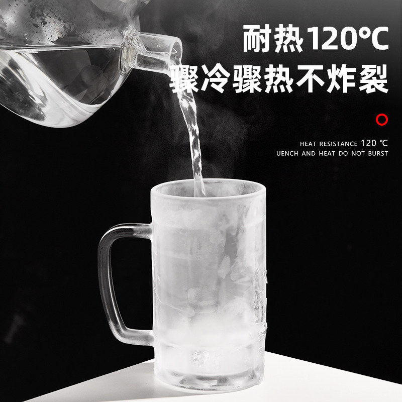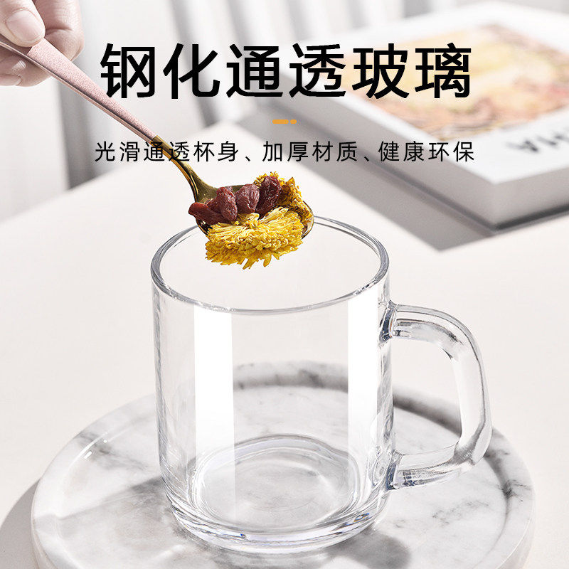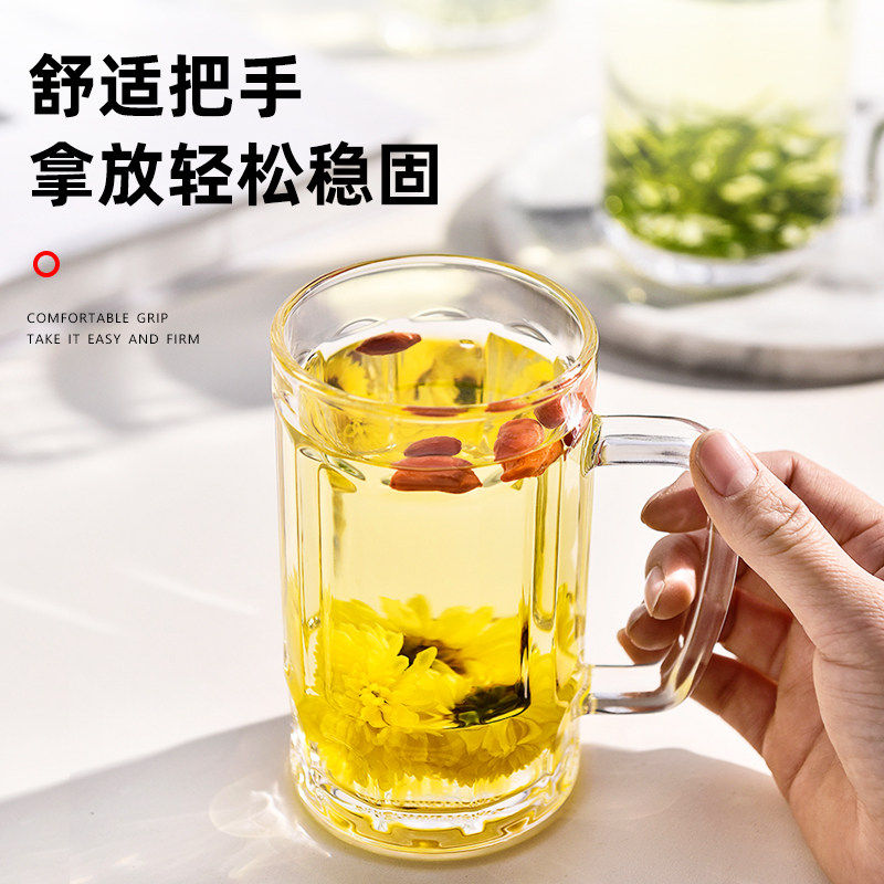 钢化玻璃杯茶杯带把手家用防摔啤酒杯子耐高温喝水男泡茶水杯防爆