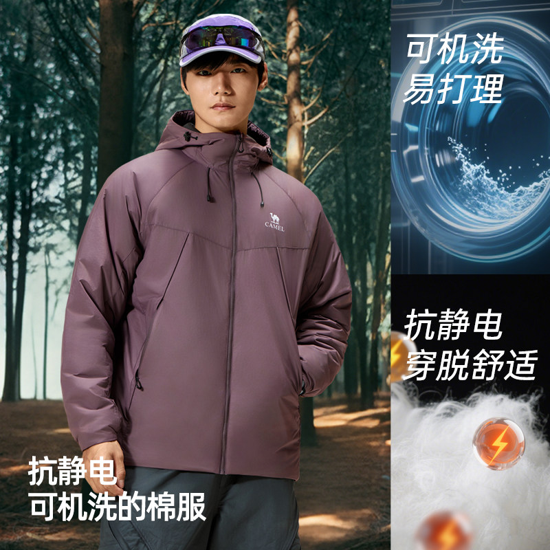 骆驼金标P棉棉服男秋冬2025新款户外轻量化运动保暖连帽棉衣外套