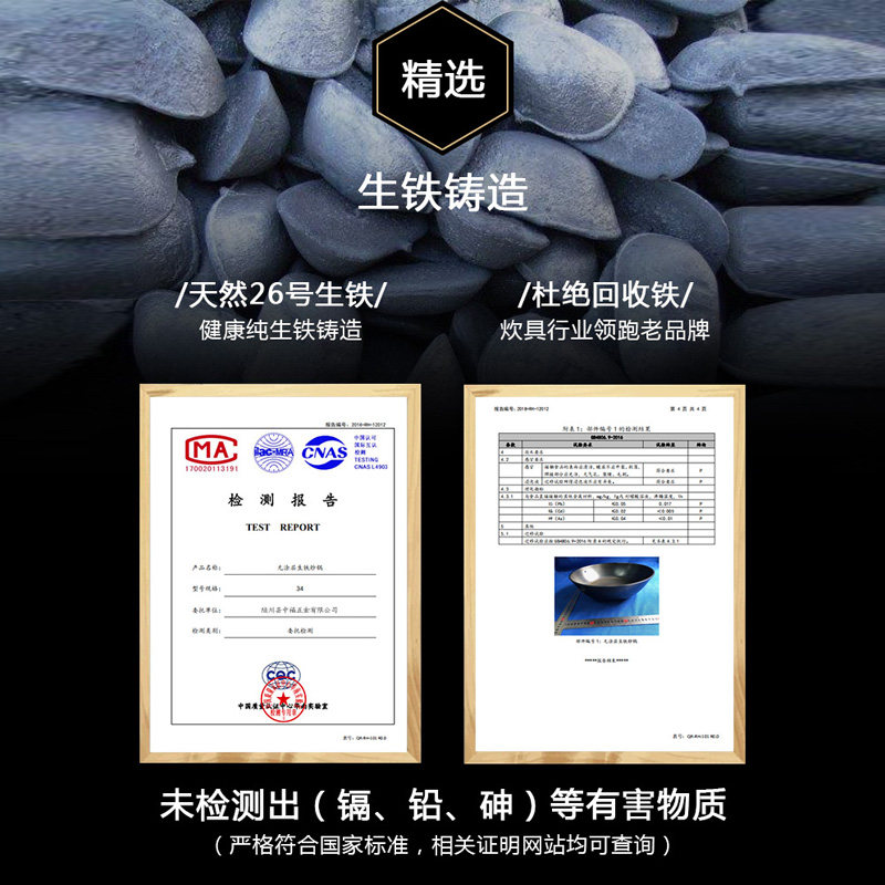 中福煎锅平底锅家用无涂层生铁铸铁锅牛排蛋饼燃气灶适用广西陆川