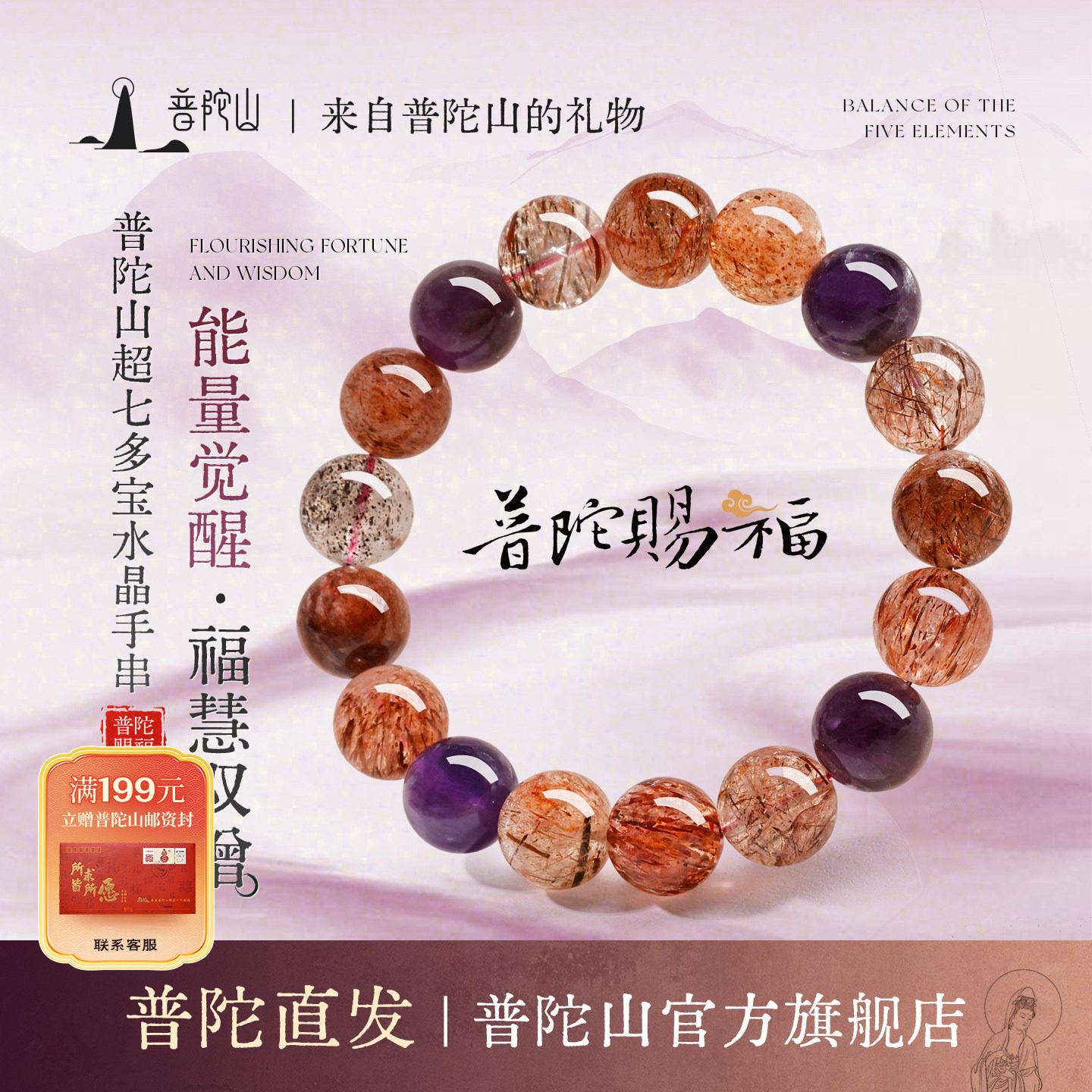 普陀山超七水晶手链女多宝草莓晶发晶彩紫7水晶天然手串生日礼物