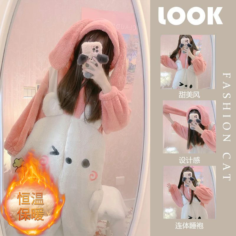 浪莎2025新款睡衣女秋冬季珊瑚绒长袖毛绒家居服连体睡袍草莓熊