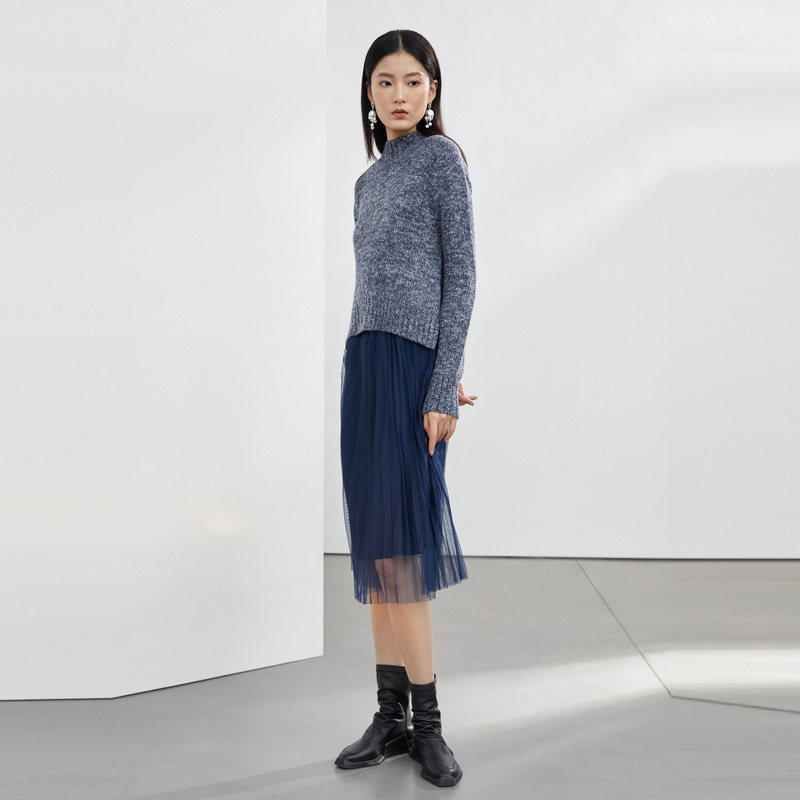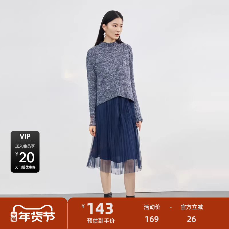 sdeer圣迪奥冬新优雅风琴褶毛衣两件套吊带连衣裙S20461210