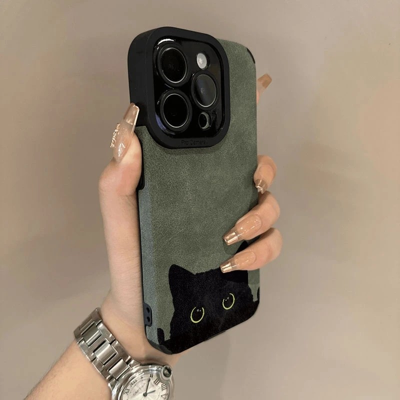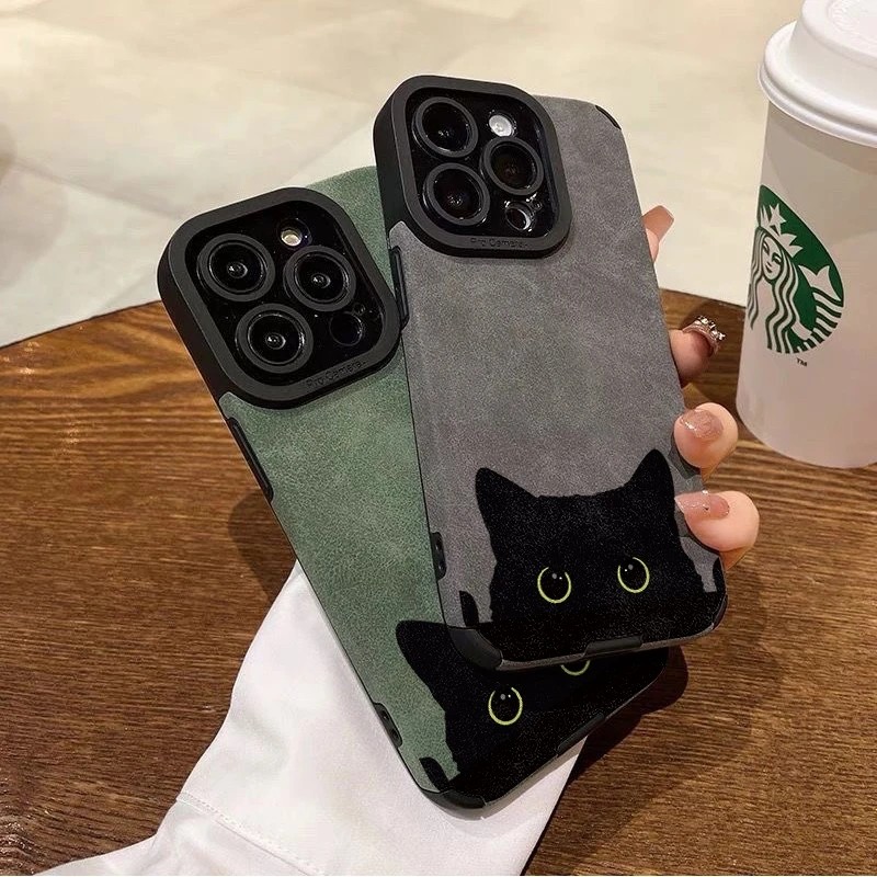 大眼黑猫适用苹果16手机壳15翻毛皮14保护13软套iPhone12硅胶Xs全11包xr防摔pro男max女6s新款78plus简约se23