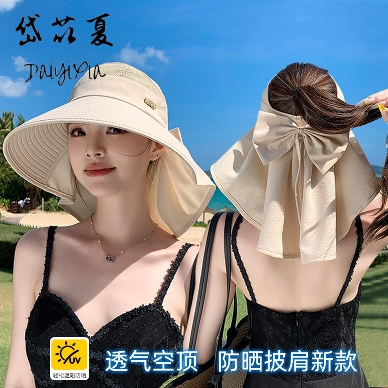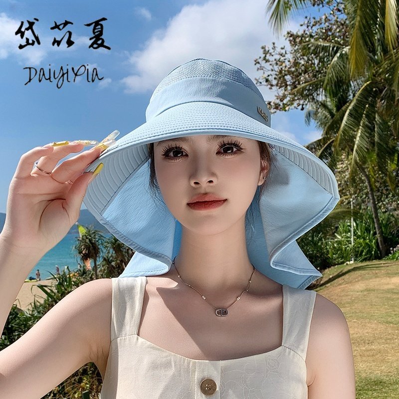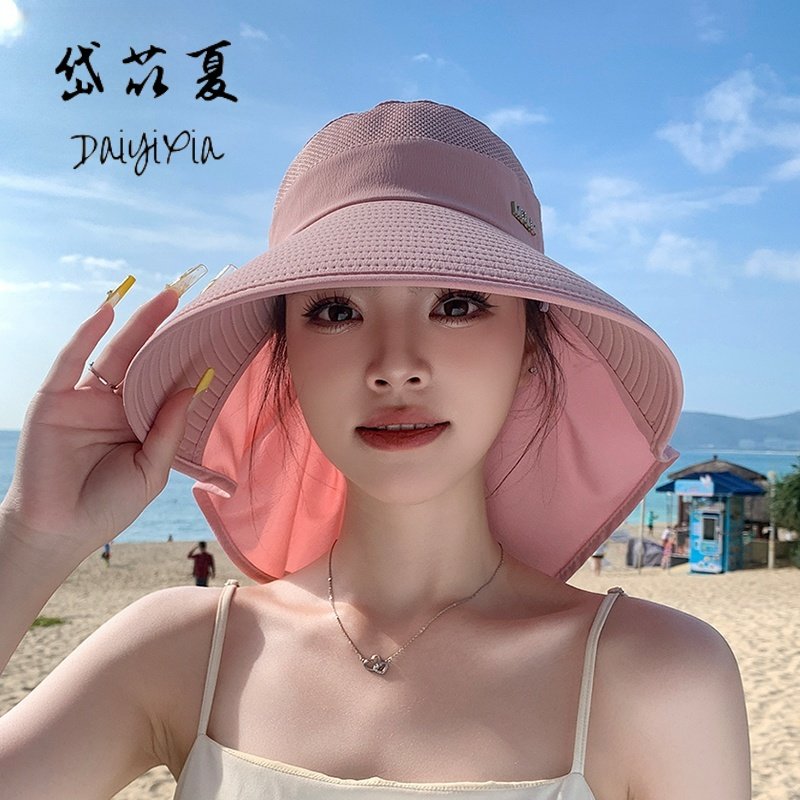 遮阳帽子女夏季户外防晒帽骑车披肩护颈渔夫帽时尚空顶帽新款帽檐