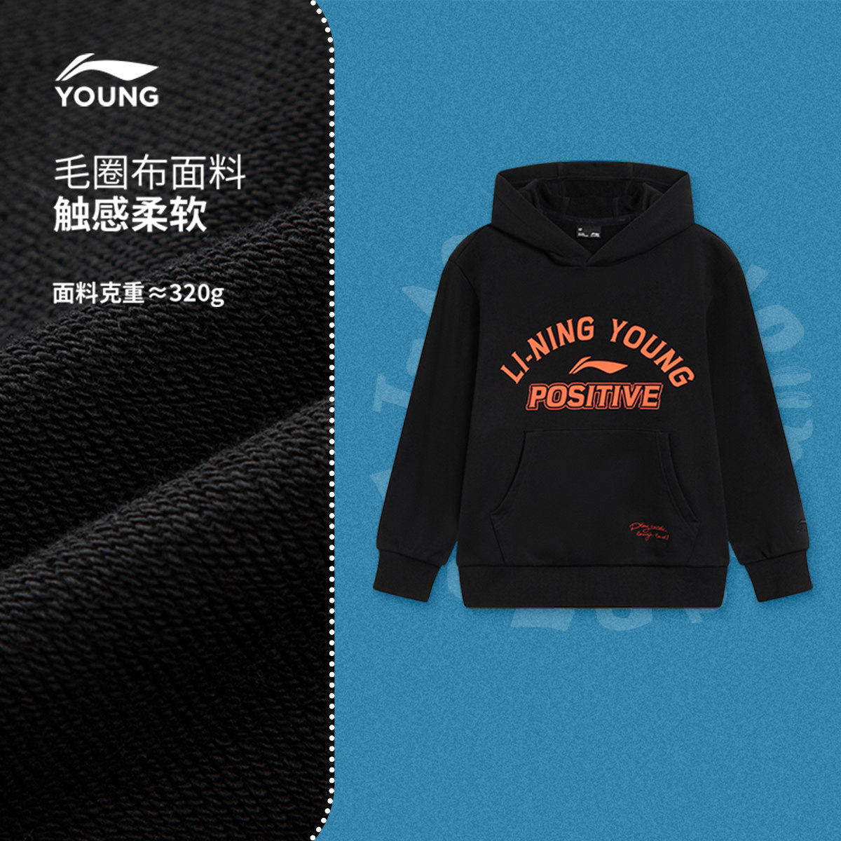 李宁童装卫衣男大童运动生活系列宽松青少年春季休闲毛圈针织童装