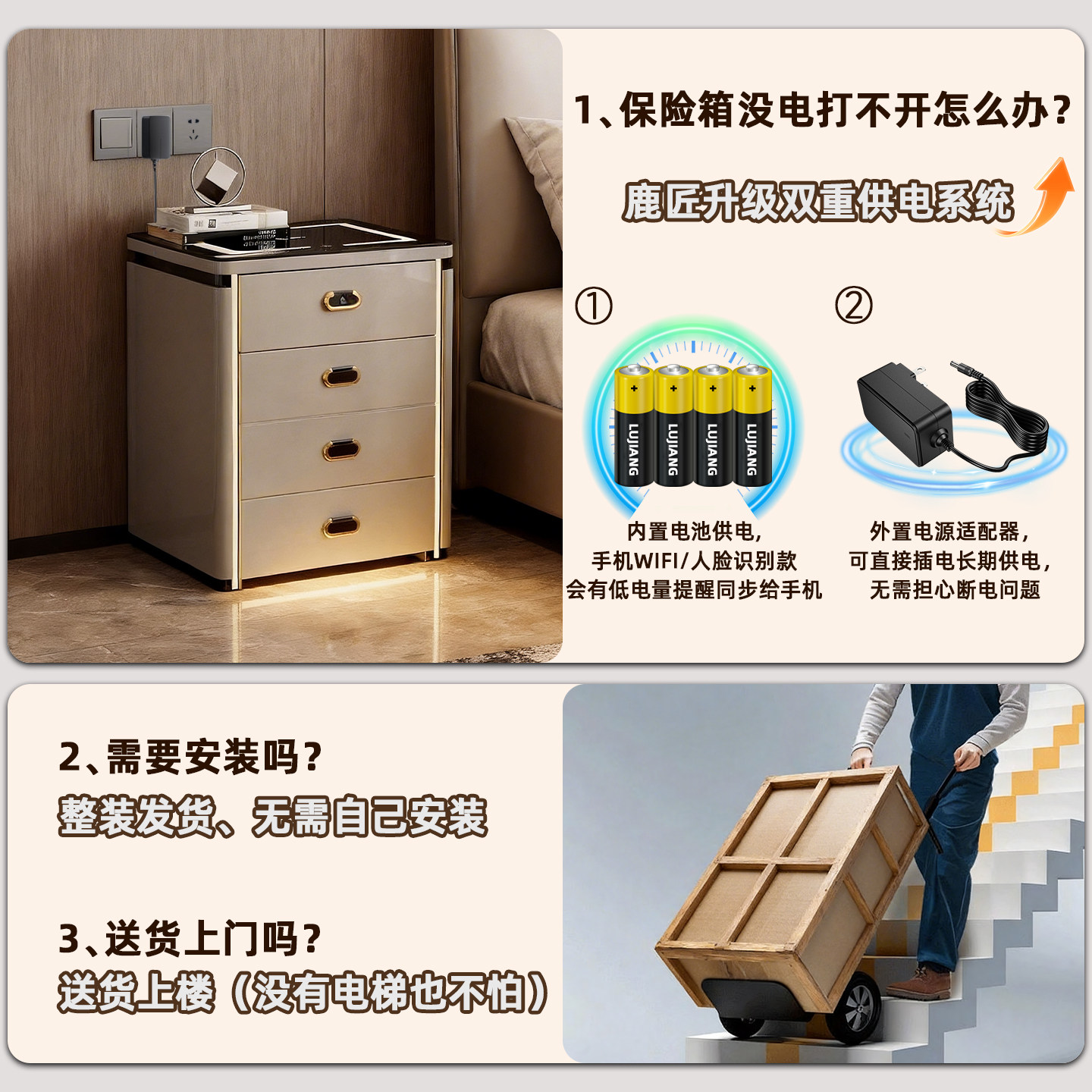 鹿匠床头柜保险柜2026新款一体式家用隐形防盗50cm宽奢华智能四斗柜搬不走人脸识别指纹密码隐藏式保险箱
