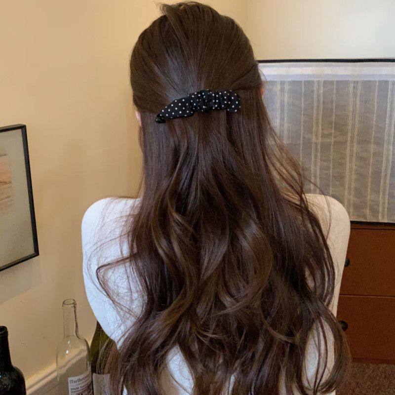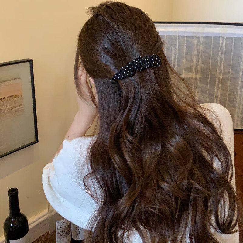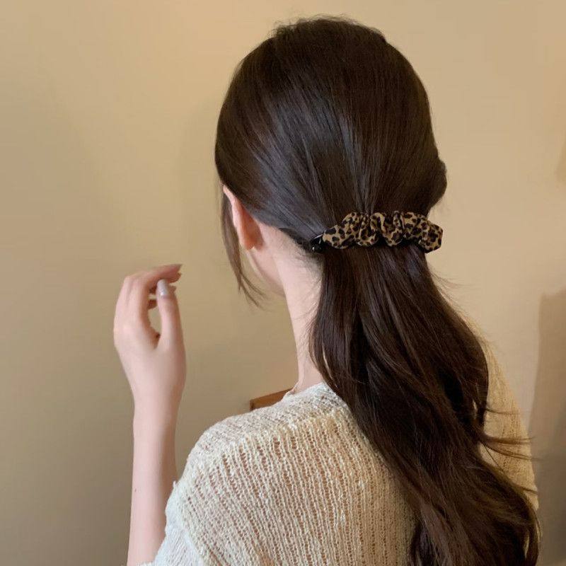 复古豹纹波点褶皱香蕉夹女后脑勺盘发抓夹马尾夹竖夹发卡头饰发饰