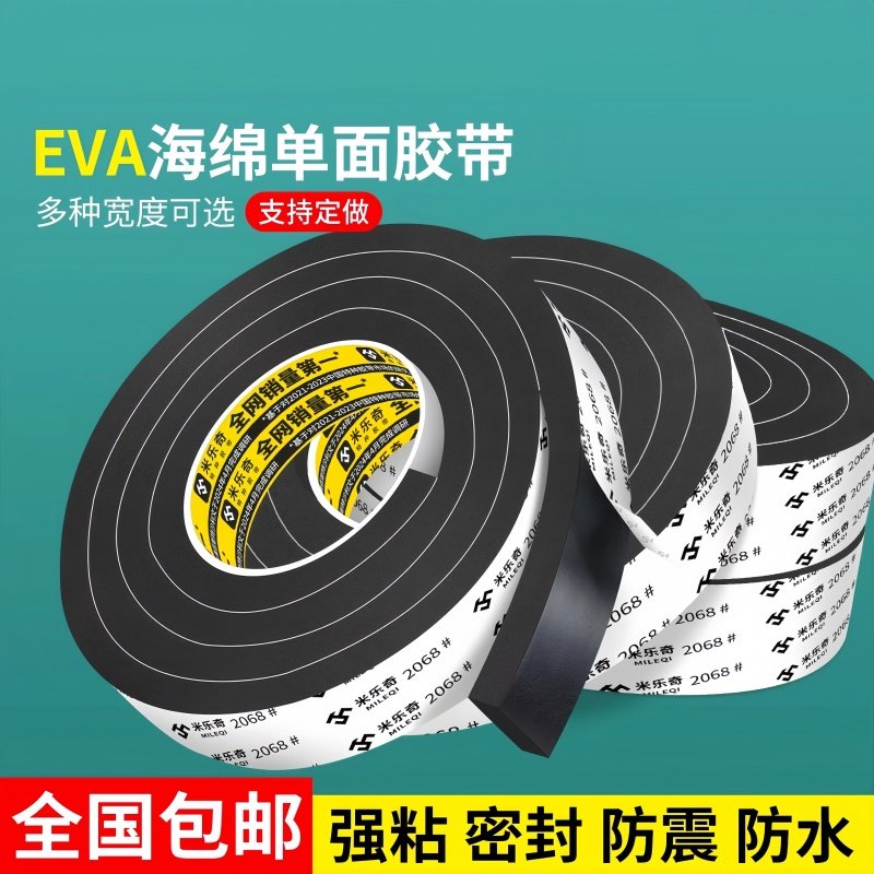 加厚eva海绵胶带黑色泡棉单面胶高粘度防震防撞汽车隔音密封胶条