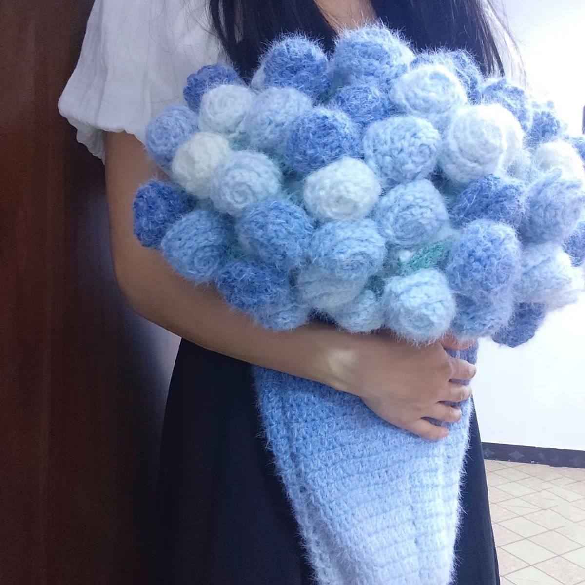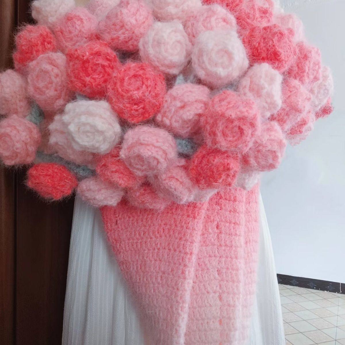魔法球长绒渐变玫瑰花束毯子丁达尔渐变羊毛线diy自制送女友礼物