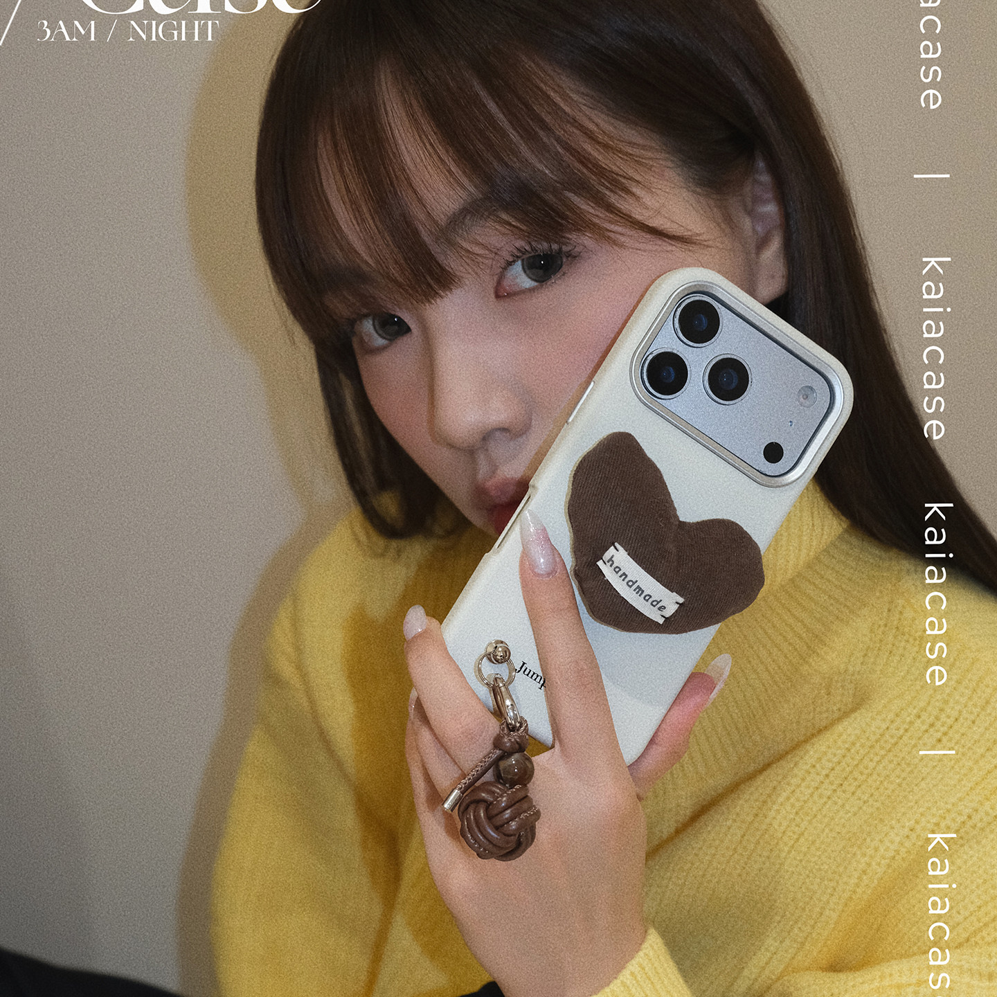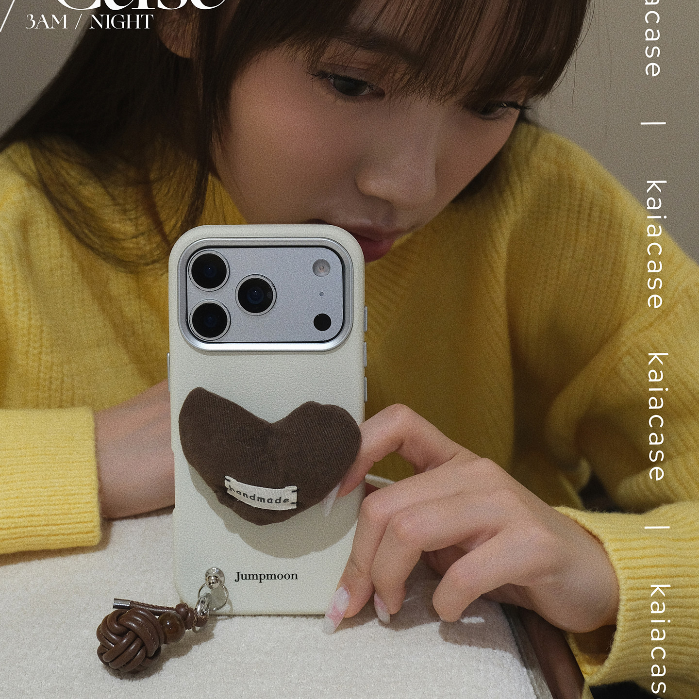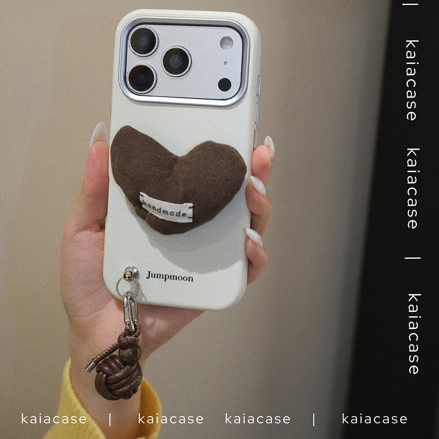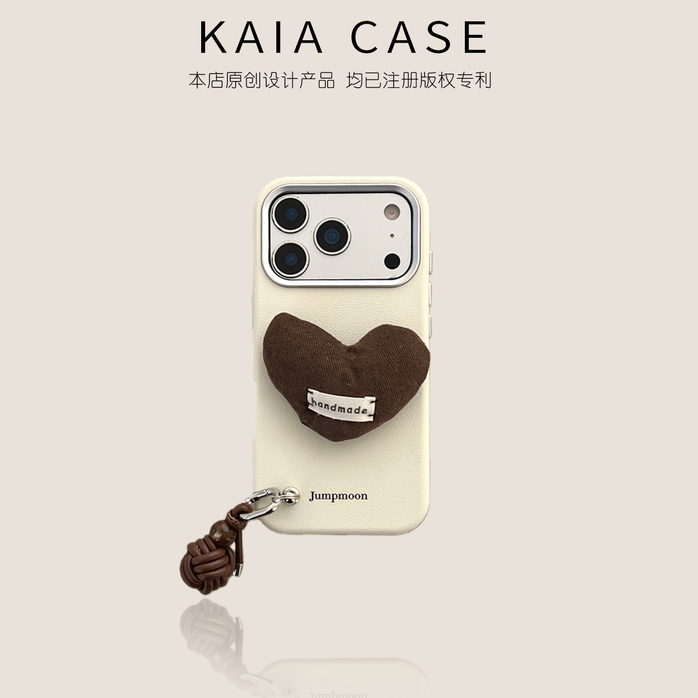 kaia 原创ins栗子棕爱心适用苹果17promax手机壳iphone16pro新款15女14promiu系挂件15pro皮纹高级防摔手机套