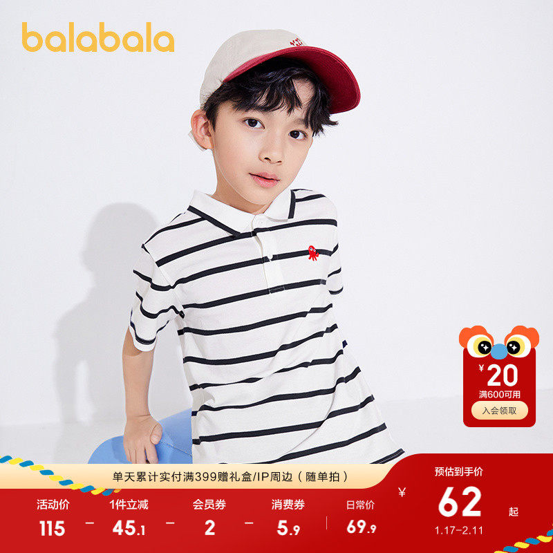 巴拉巴拉童装儿童短袖t恤男童polo衫中大童新款夏装凉感条纹上衣