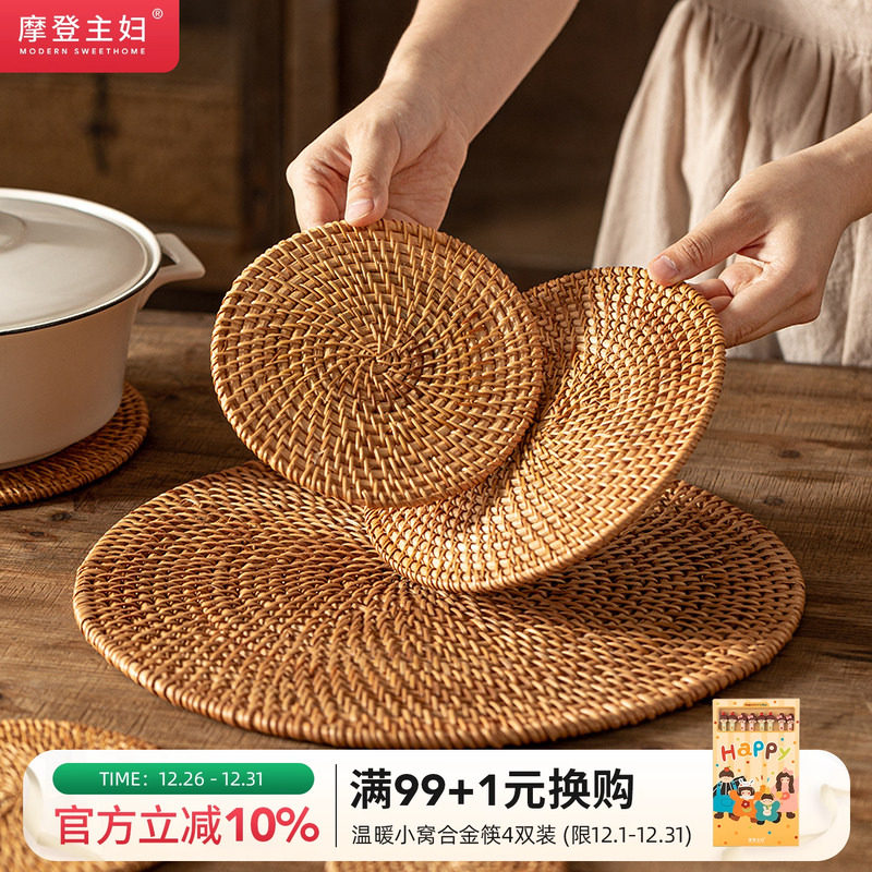 摩登主妇藤编隔热垫桌垫防烫锅垫茶杯垫家用耐高温耐热碗垫菜盘垫
