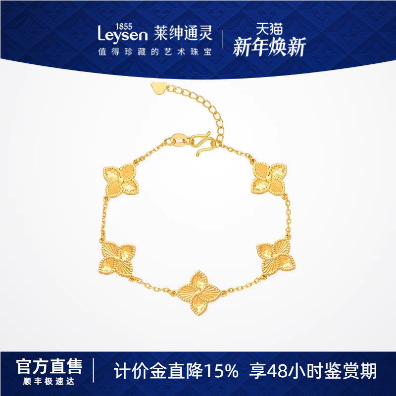 【计价金】莱绅通灵Flora五花四叶草 5G黄金手链足金999手链