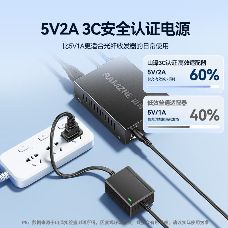 山泽光纤收发器一对千兆单模单纤双纤光电转换器百兆3KM电信SC接口20km外置电源监控网络数据防雷双向传输1台