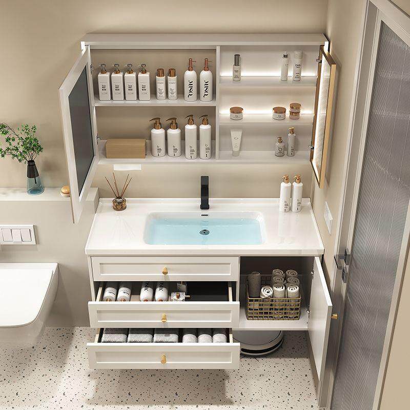 奶油风卫生间洗漱台一体台盆浴室柜组合洗手池智能镜子挂墙落地式