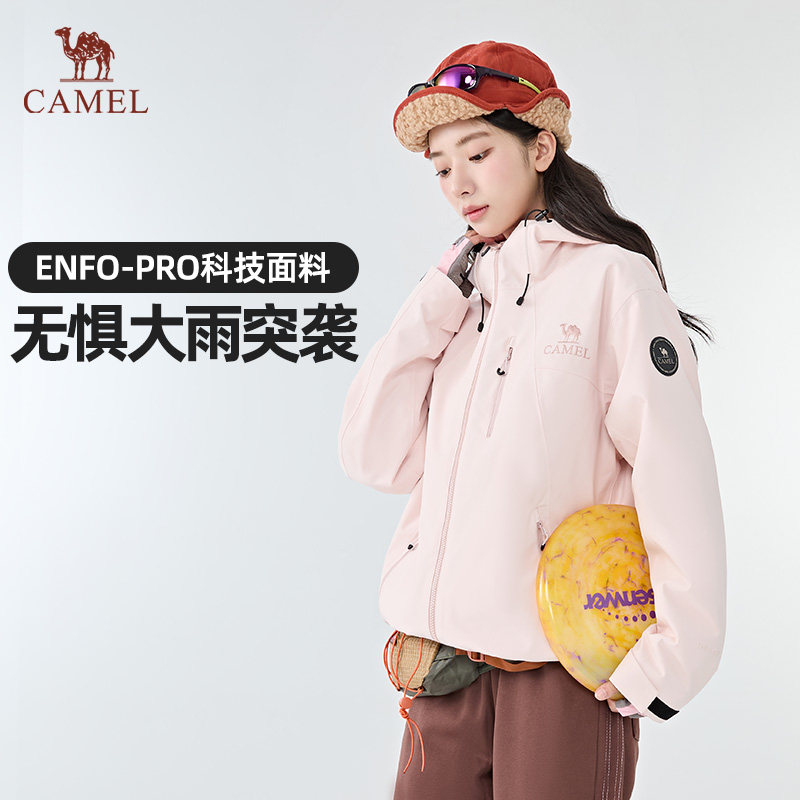 骆驼女装单层冲锋衣2025新款秋冬户外防风防水连帽立领男女款外套