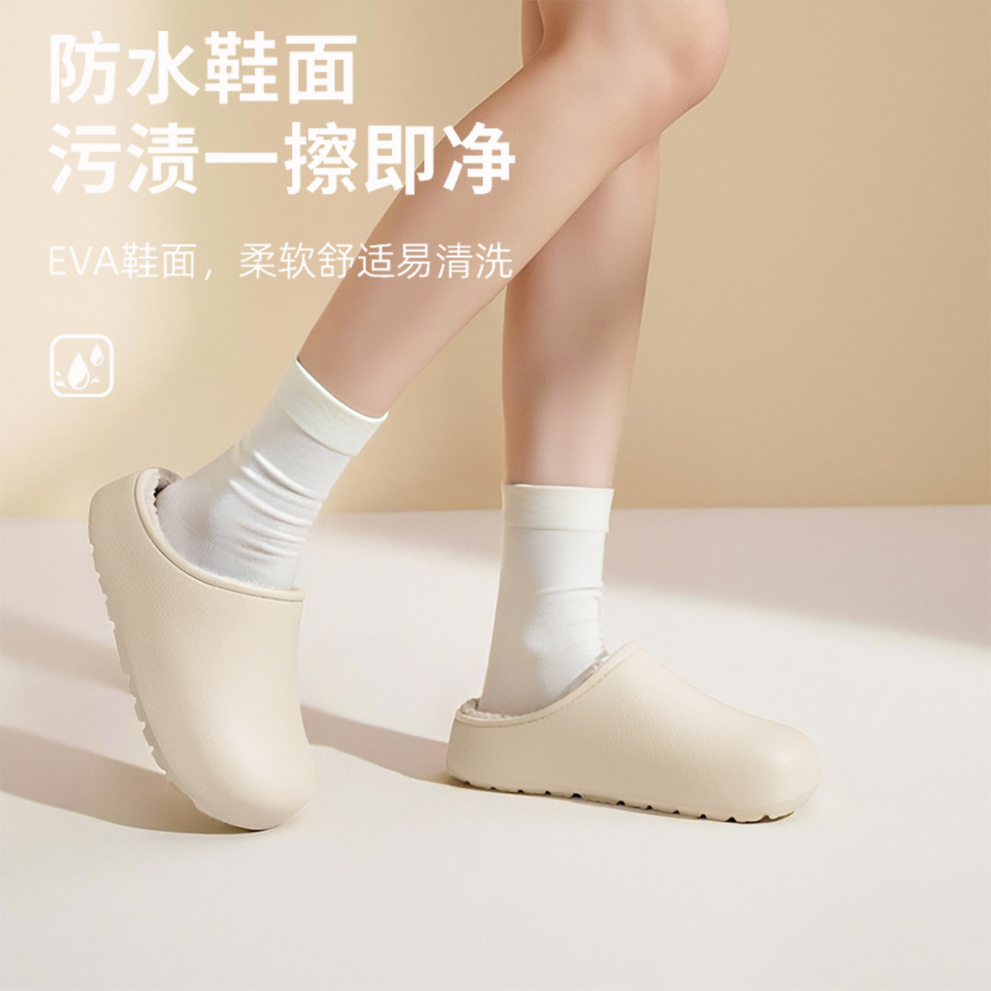 亚束迈舒厨师鞋加棉男增高厚底棉拖鞋冬季外穿防滑防水加绒保暖女