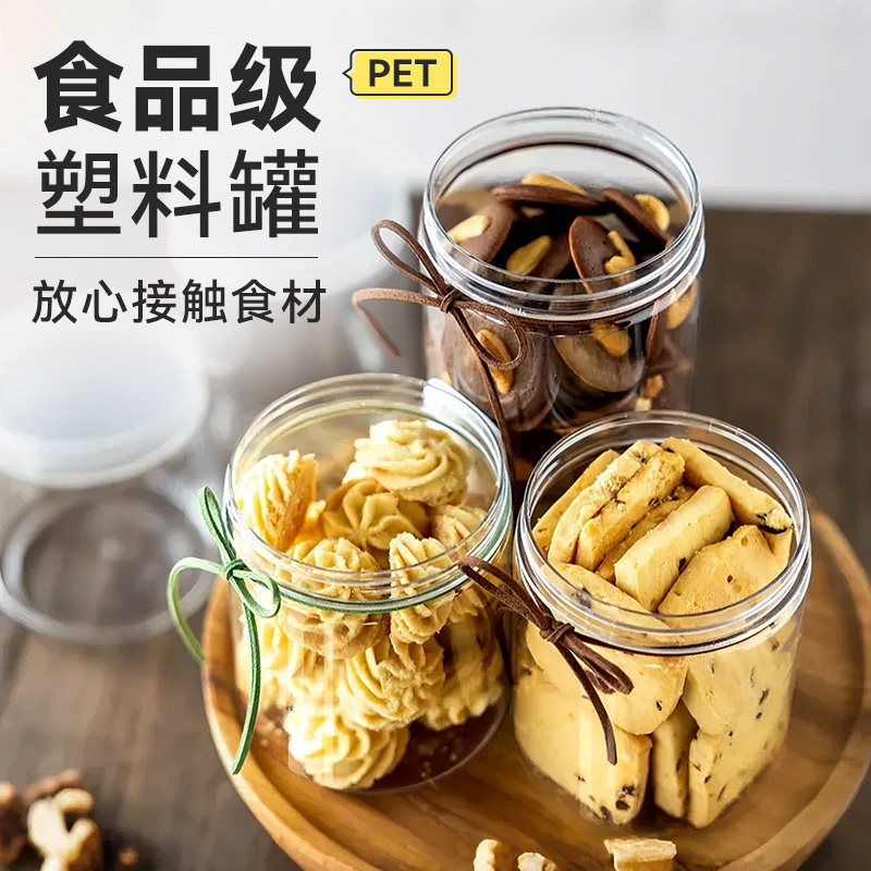 透明储物罐塑料瓶食品级pet瓶子空瓶储物密封罐雪花酥饼干包装桶