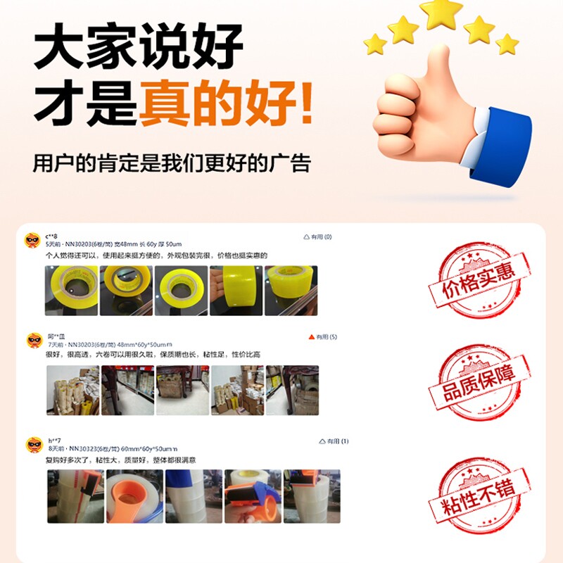 金陵赋透明胶带高粘度不易断大号宽胶带快递打包封箱带加宽厚封口胶布胶纸大卷强力封箱胶带手工耐磨特价批发