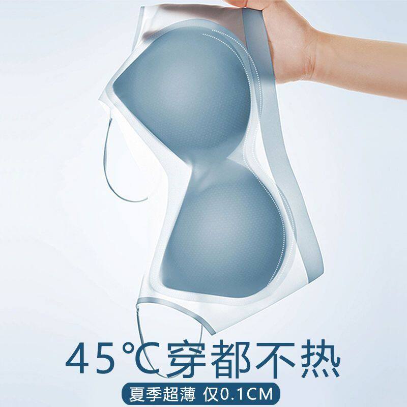 超薄冰丝内衣女美背文胸一体式胸罩夏季无痕大胸显小聚拢抹胸薄款