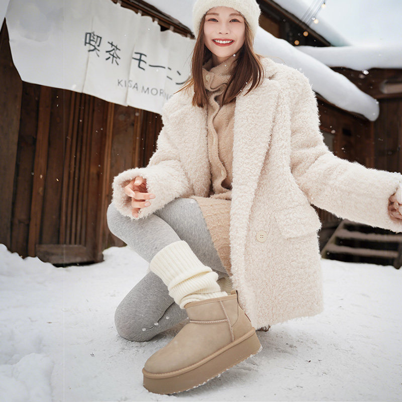 内增高~桑坡真皮厚底羊毛雪地靴女加绒保暖东北棉靴秋冬季短筒靴