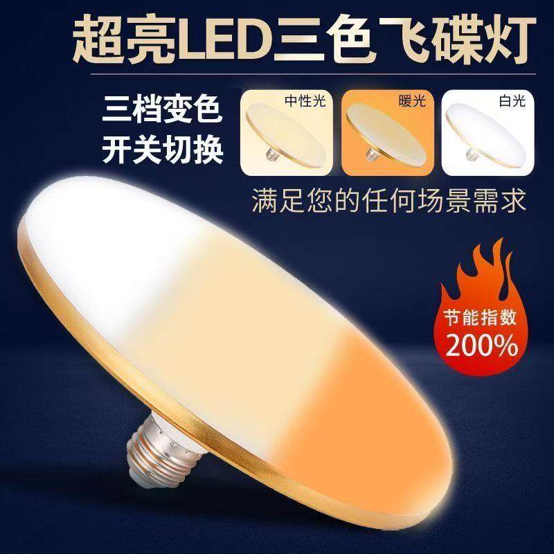 三色变光led灯泡飞碟灯E27螺口白光暖光可调家用节能变色护眼灯泡