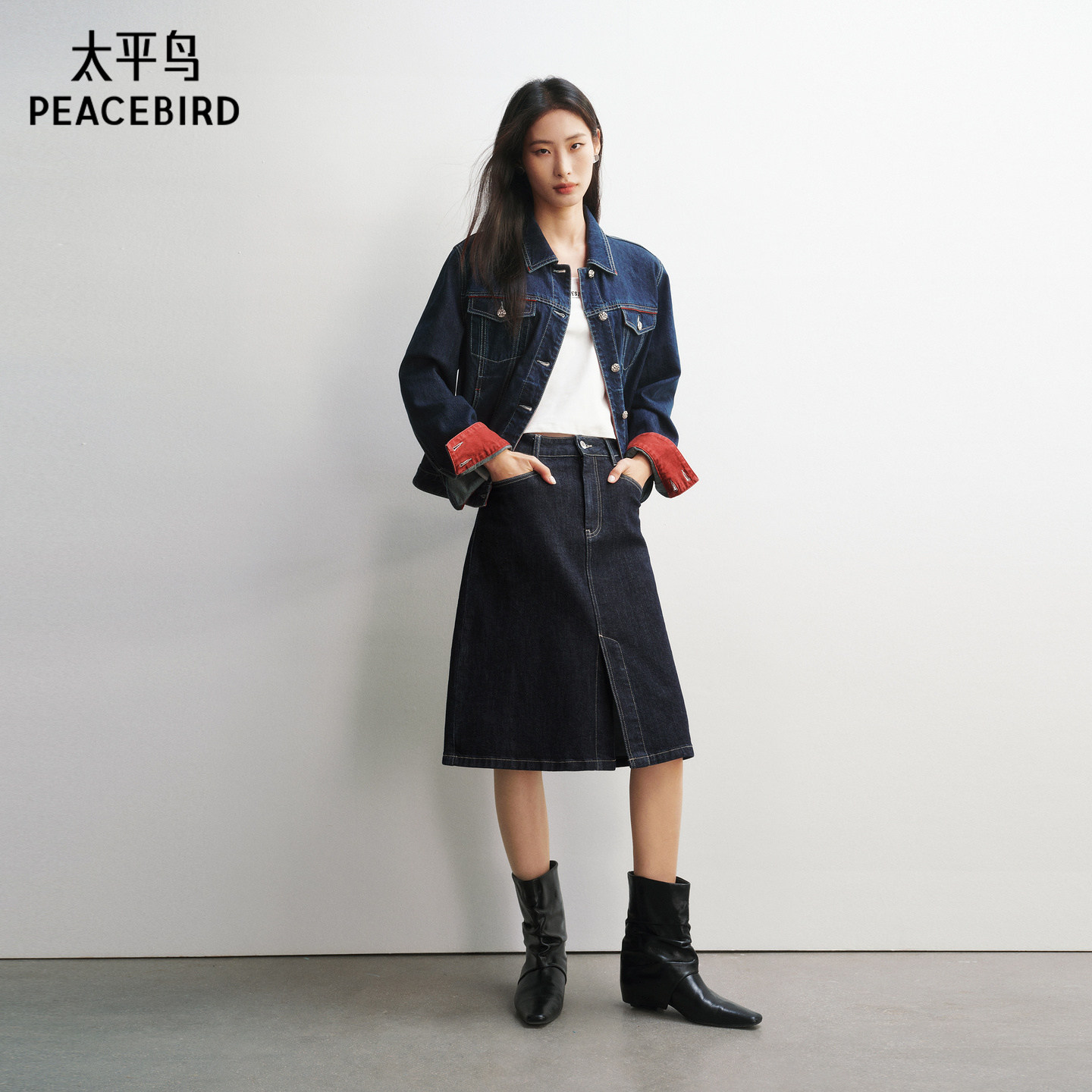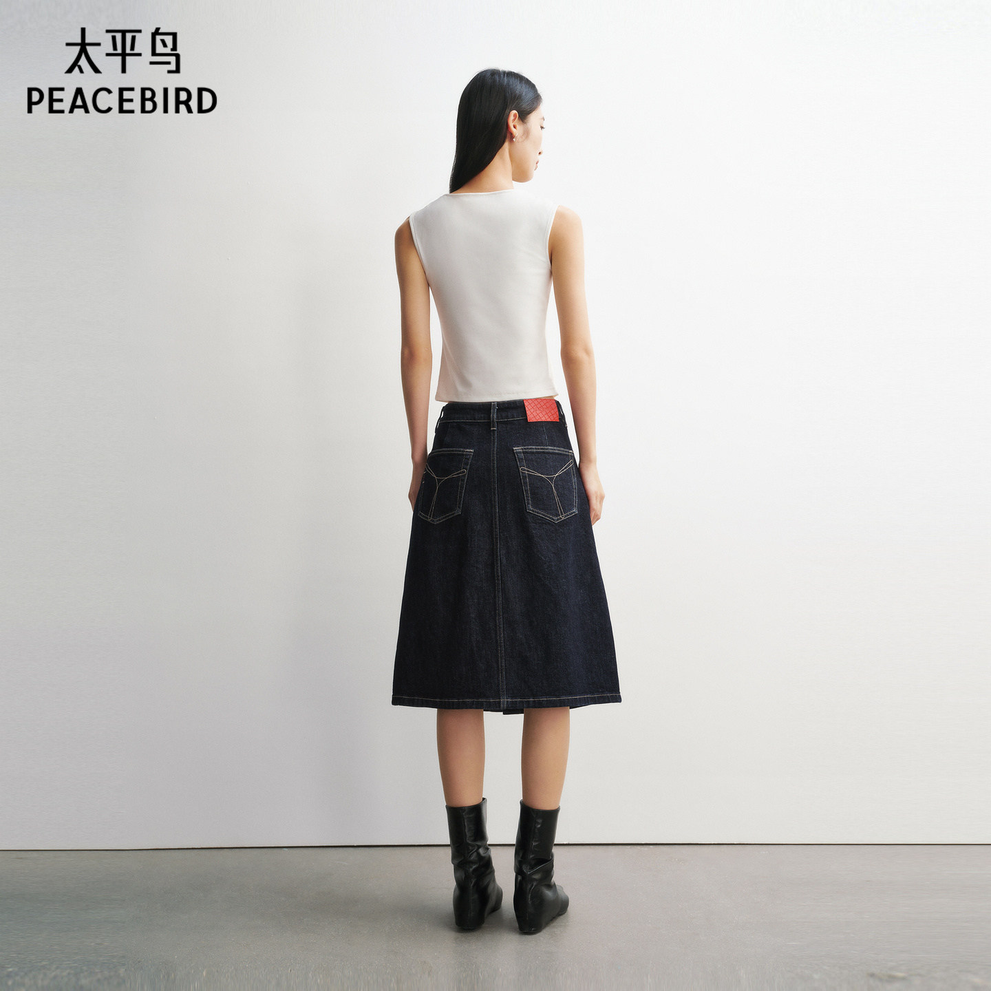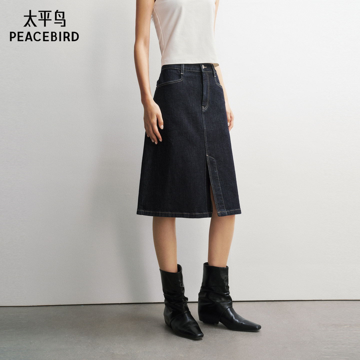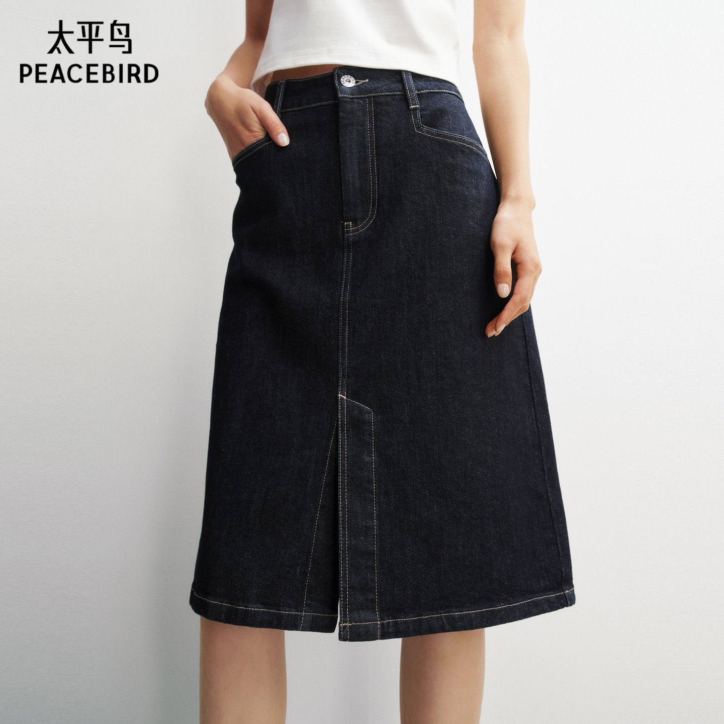【商场同款】太平鸟原牛深蓝色牛仔半身裙中裙春装新款A1HFG1247
