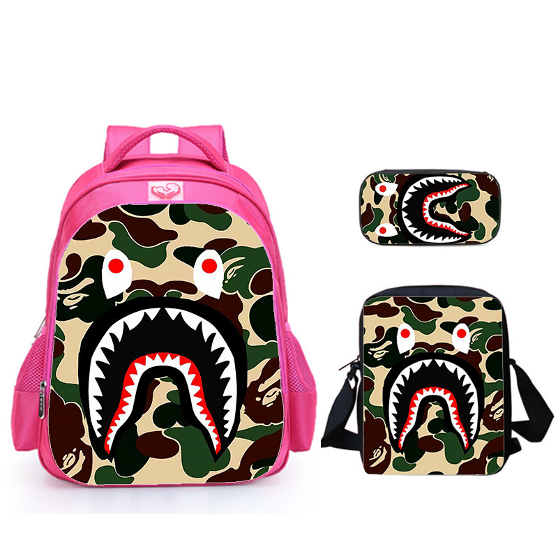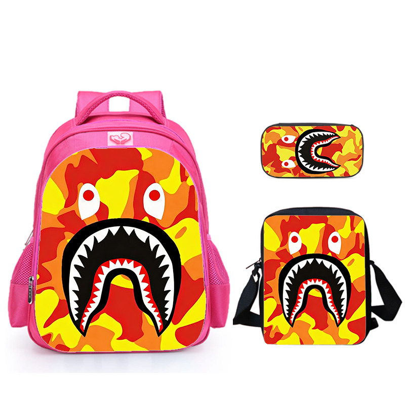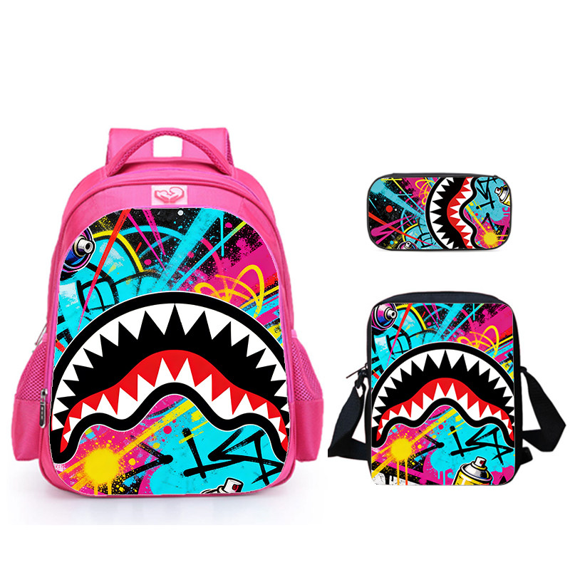Sprayground潮牌石纹涂鸦大嘴鲨鱼 学生上学便携背包饭盒袋文具包