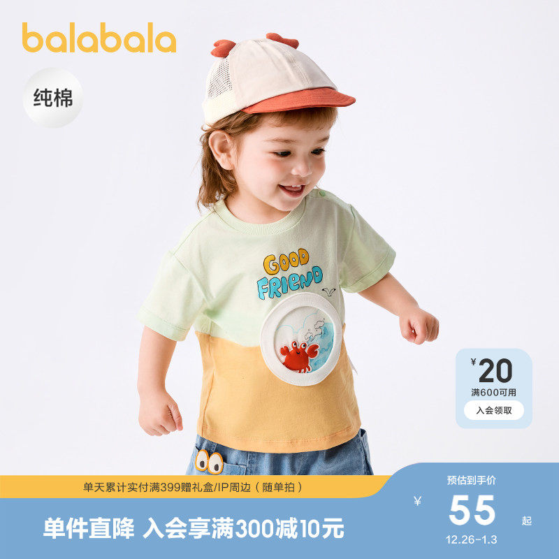 巴拉巴拉婴儿t恤宝宝上衣女童衣服男童短袖2025新款春夏装甜美潮