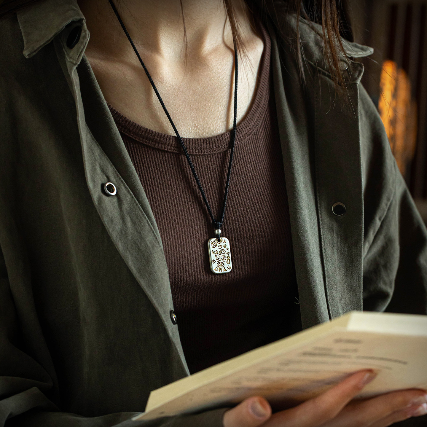 普陀山黑曜石无事牌吊坠女天然护身符项链平安符送男朋友的礼物