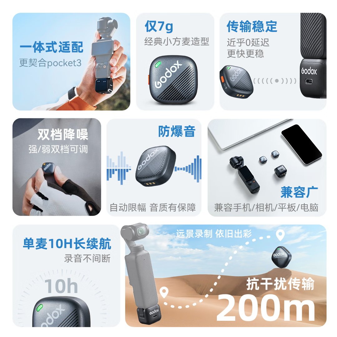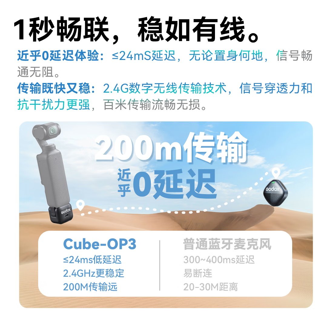 神牛Cube-op3无线纽扣麦克风 适用大疆pocket3收音降噪录音小方麦