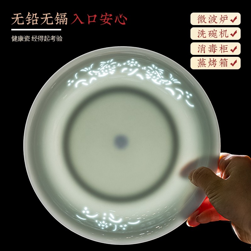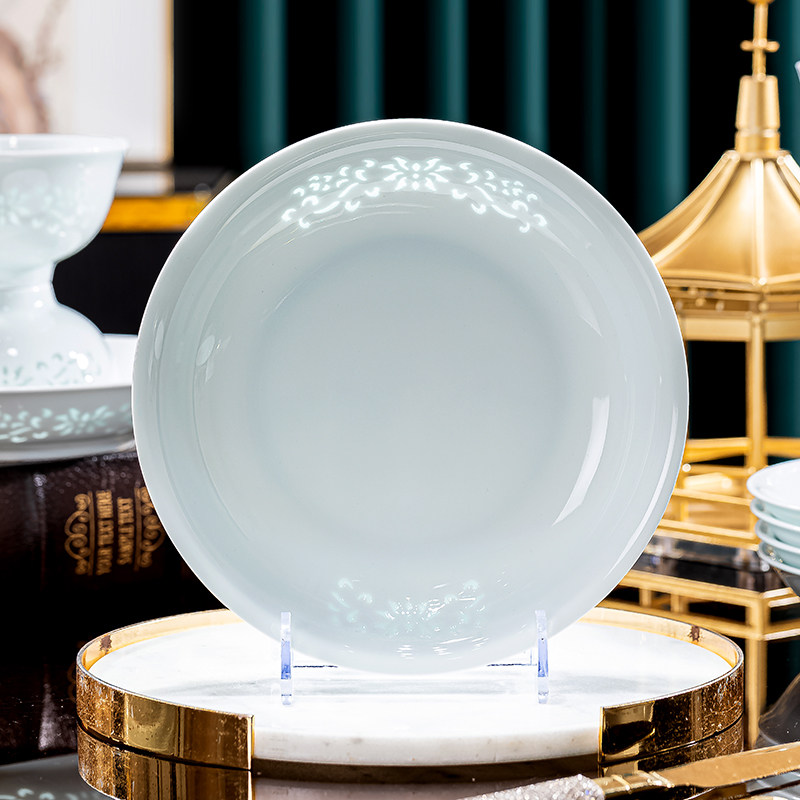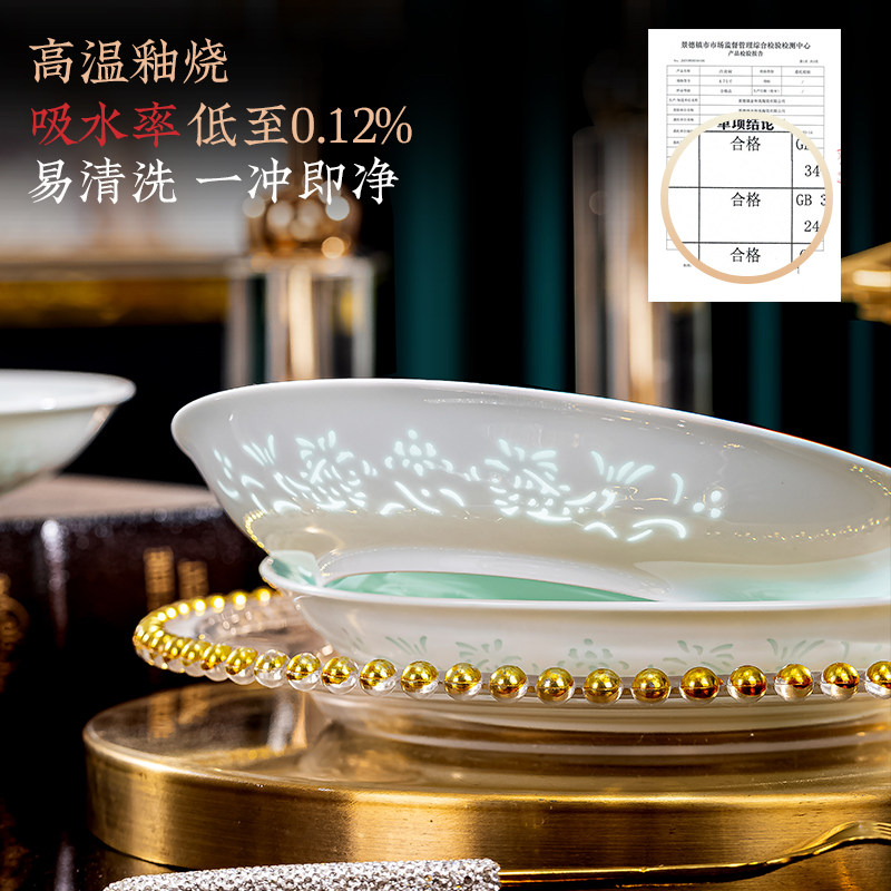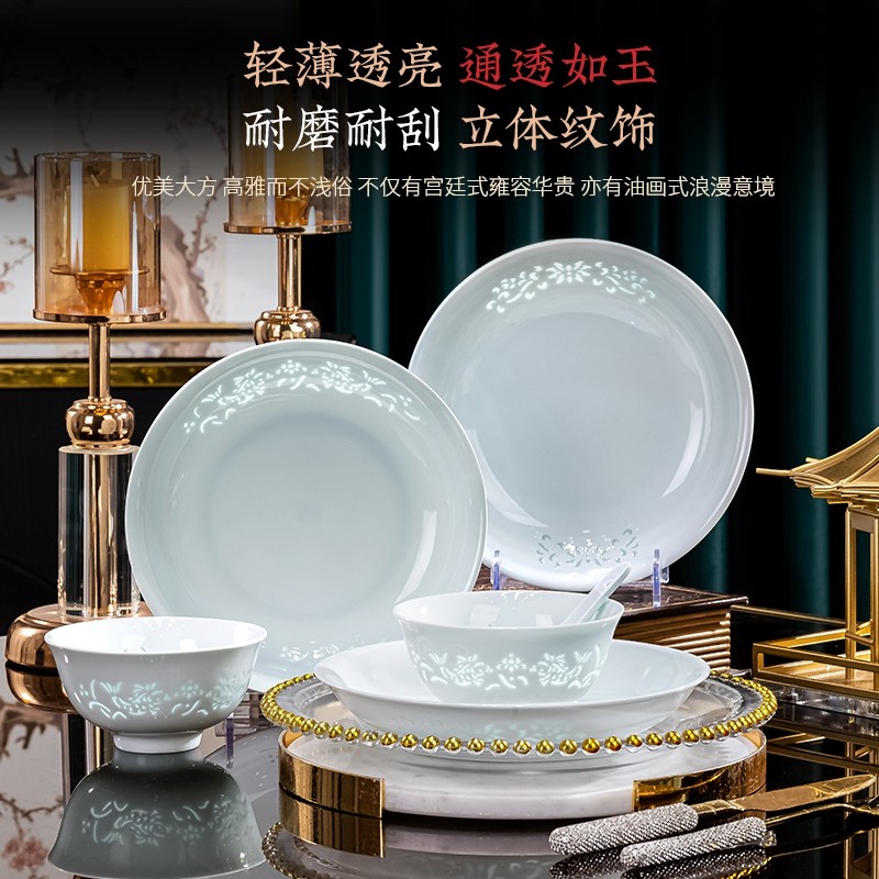 景德镇玲珑餐具釉下彩高温瓷家用碗碟组合套装深盘菜盘子易清洗