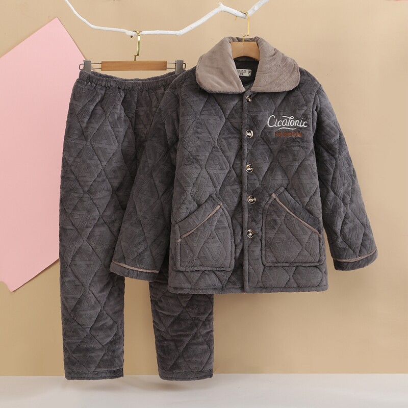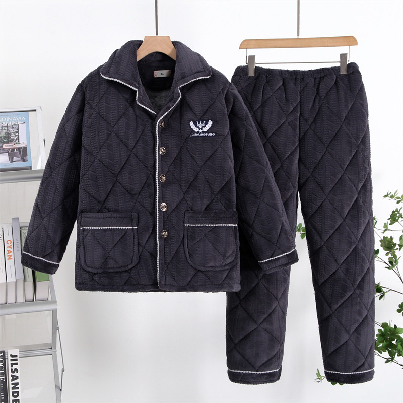 冬季珊瑚绒男士睡衣三层夹棉加厚加绒法兰绒秋冬款家居服保暖套装