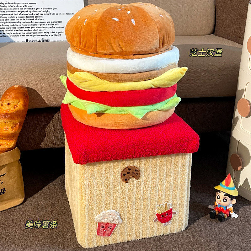 创意汉堡收纳凳小凳子家用可爱储物盒可坐换鞋凳矮凳板凳收纳客厅
