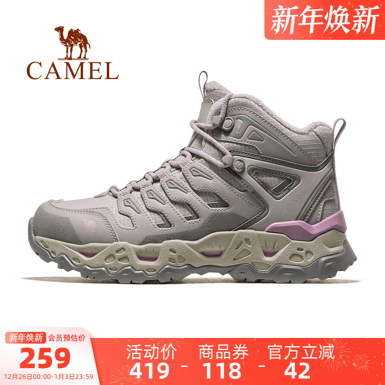 骆驼女鞋2025冬季新款户外加绒保暖棉鞋户外徒步登山鞋厚底短靴子