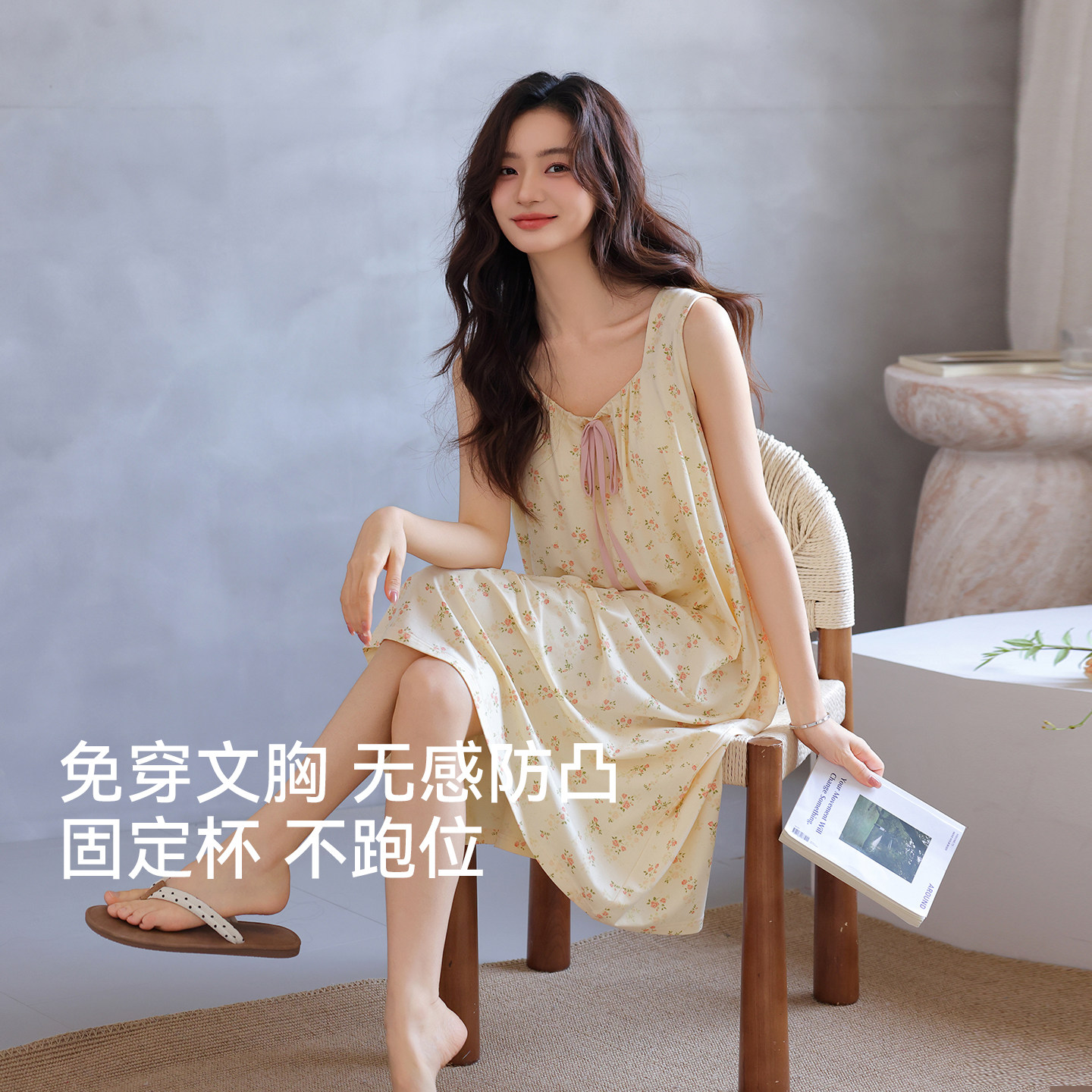 睡裙女夏季吊带性感薄款蕾丝睡衣孕妇带胸垫纯棉莫代尔宫廷公主风