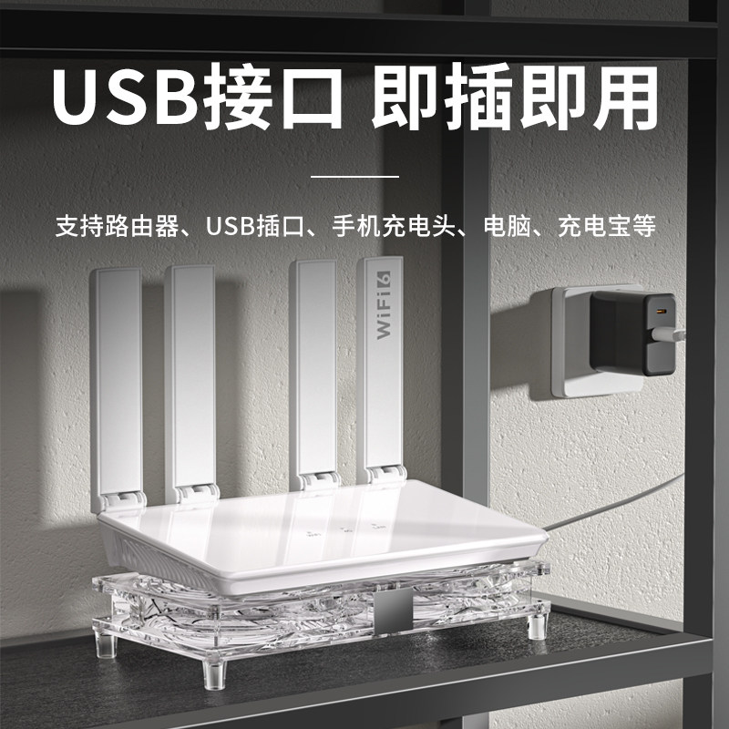 华顾usb透明风扇底座5v静音路由器散热风扇光猫机顶盒wifi散热器
